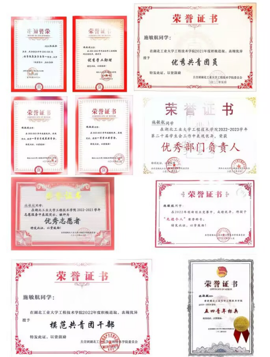 施敏航 ,男 ,汉族,共青团员,管理系21gb营销1班学生。2021.9-至今 担任班级学习委员,积极组织班级学习活动,促进同学们的学习。2023.6-2024.6担任管理系学生会执行主席。2022.6-2023.6担任院学生会文体部部门负责人。2021.6-2022.6担任院学生会文体部工作人员。2021.6-2022.6担任院学生发展中心新闻传媒部干事。