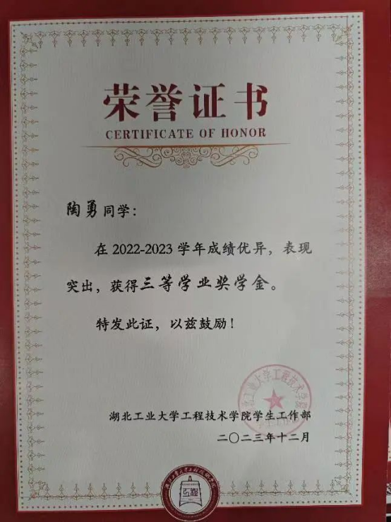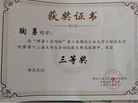3. 湖北工业大学工程技术学院金赛技能大赛三等奖(单人获奖)
