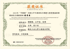 2023.6 获得湖北省2023年“学创杯”全国大学生创业综合模拟大赛省部级特等奖
