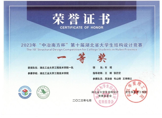 2、2023年“中冶南方杯”第十届湖北省大学生结构设计竞赛一等奖(团队负责人)