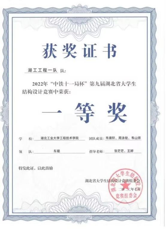 5、湖北工业工业大学工程技术学院2021-2022第三届结构设计竞赛一等奖(团队负责人)