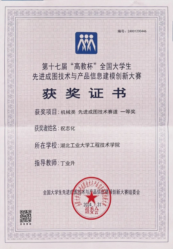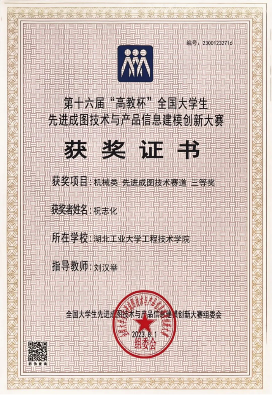 获得第十七届全国大学生先进成图技术与产品信息建模创新大赛国家级一等奖