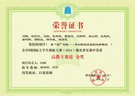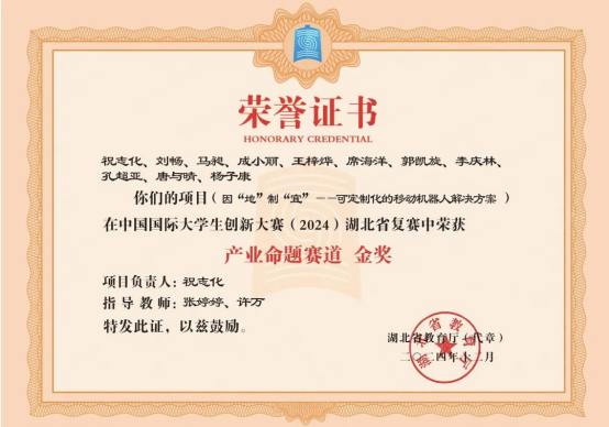 获得中国国际大学生创新大赛(2024)湖北省复赛产业命题赛道金奖、国家级铜奖