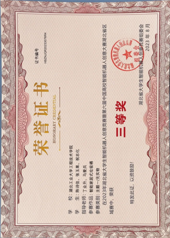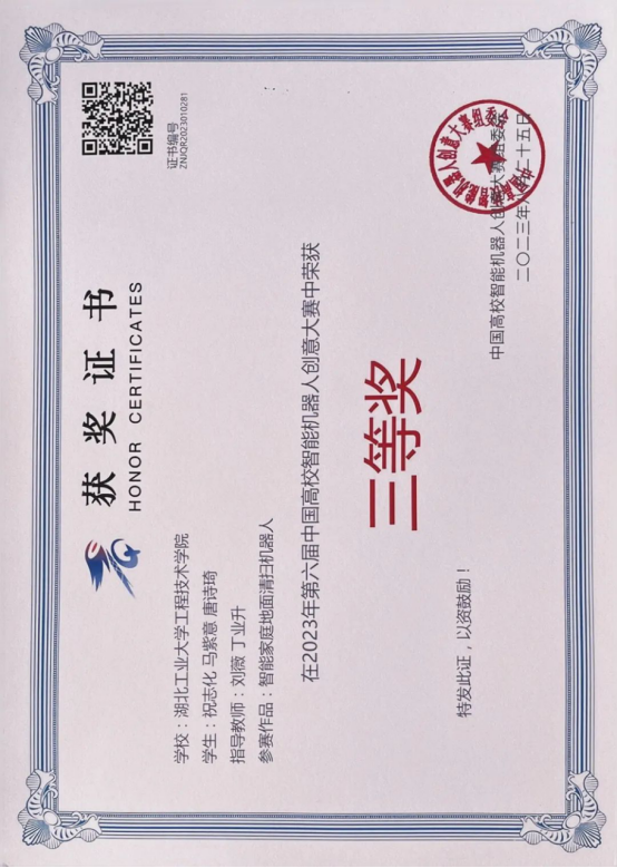 获得第六届中国高校智能机器人创意大赛国家级三等奖、成图大赛国家级团体三等奖