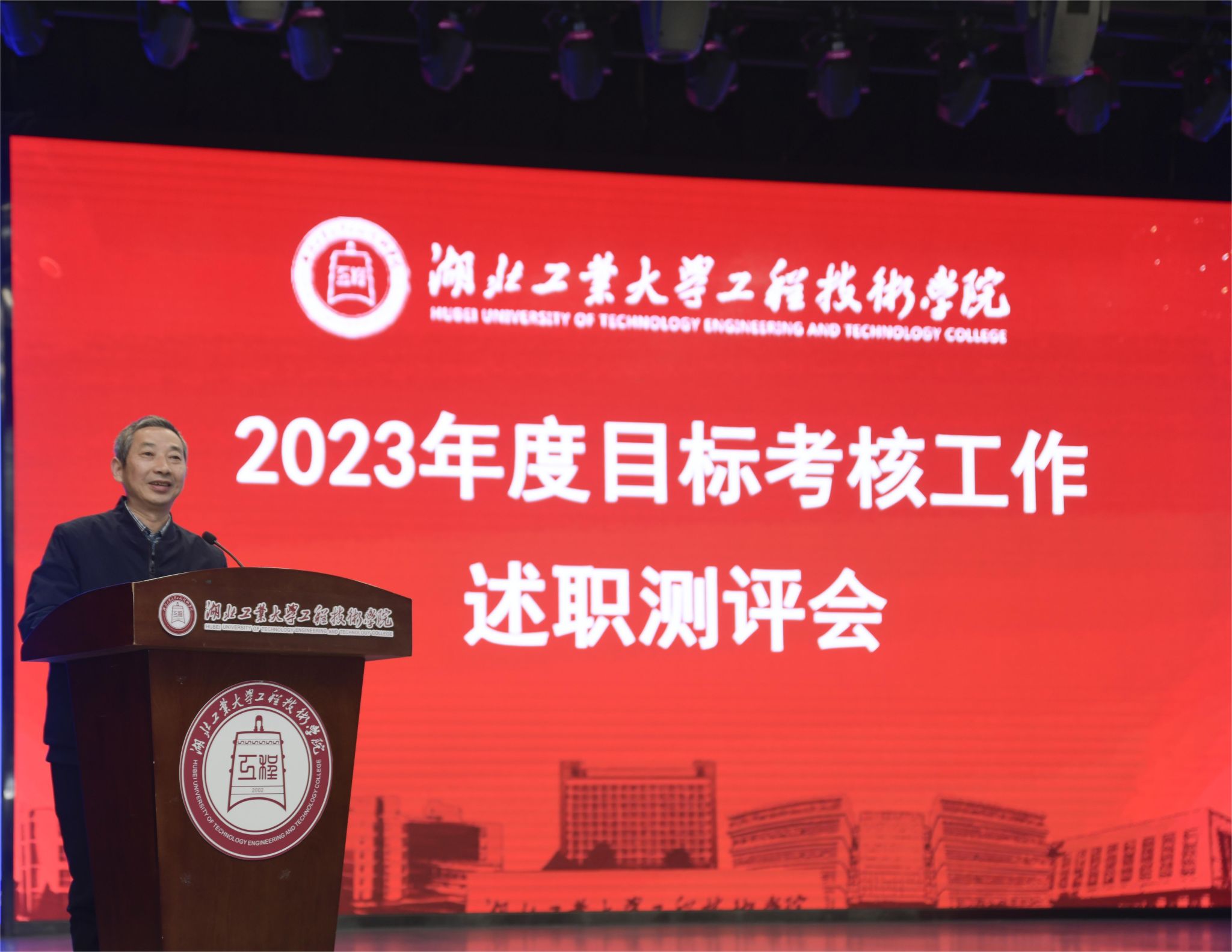 1月5日,学院在博雅园报告厅召开2023年度二级单位目标考核述职测评会。全体院领导、学院组织员,督导员、全体中层干部、教学督导、民主党派教职工代表及各教学单位教师代表参加会议。会议由党委副书记、目标管理领导小组副组长黄华主持。