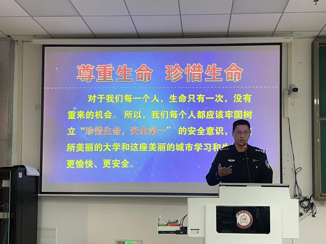 在交通安全及防电信诈骗安全教育课上,胡连军凭借其深厚的专业知识和丰富的实践经验,通过详细的数据和直观的视频案例,重点讲解了违反交通规则的危害性、驾驶电动车的安全规则以及如何防范电信诈骗等内容,告诫学生牢固树立“安全第一”意识。