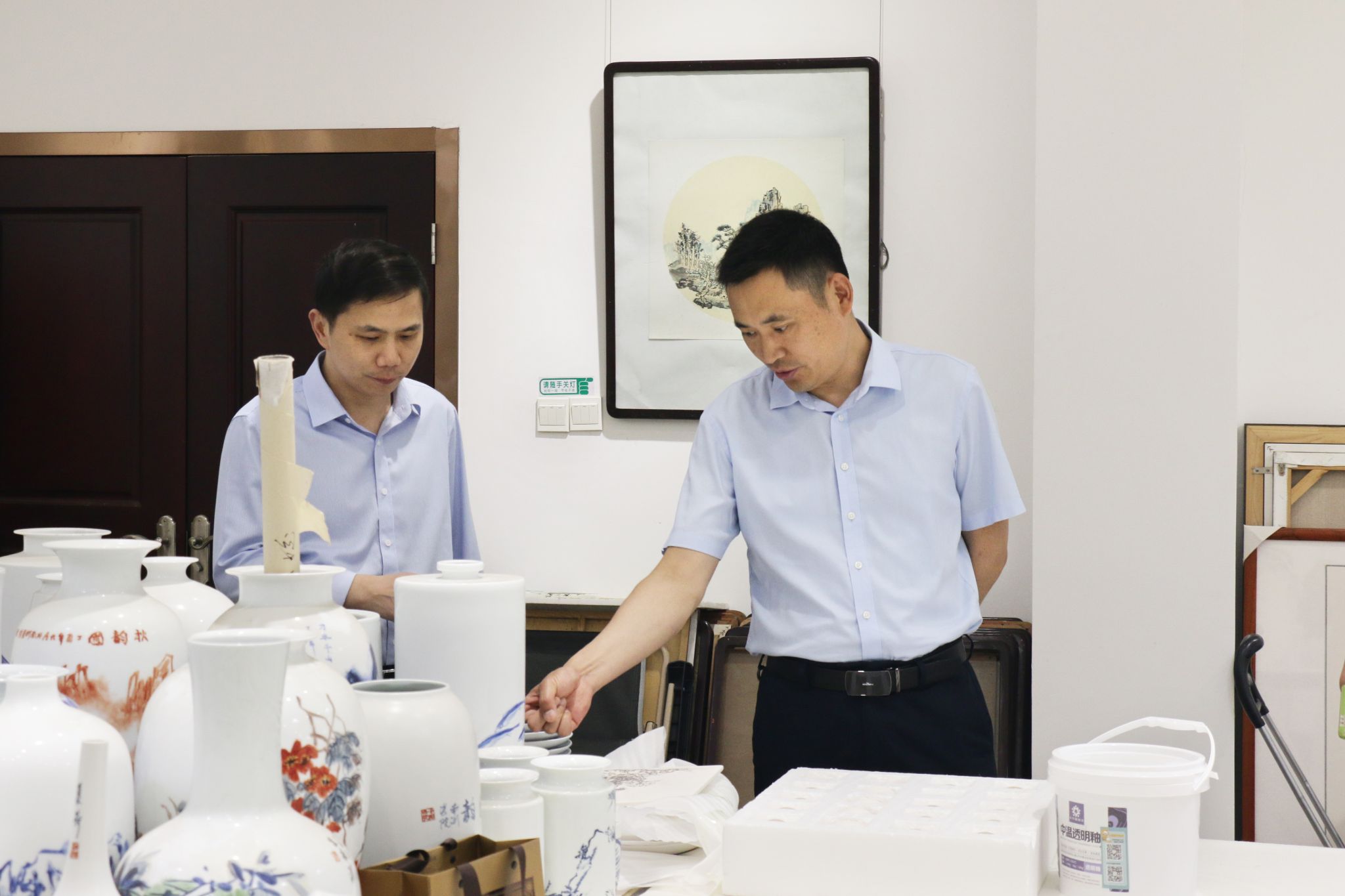 本次观摩会以“美育赋能思政工作有‘艺’思”为主题,参观了艺术楼文化墙、系一站式学生服务中心、二级心理辅导站以及文创工作室、国画工作室等地。艺术设计系将美育融入学生管理细节,展现了全方位培养模式。