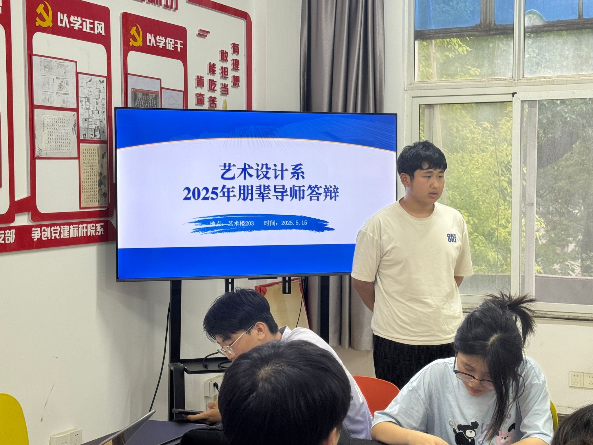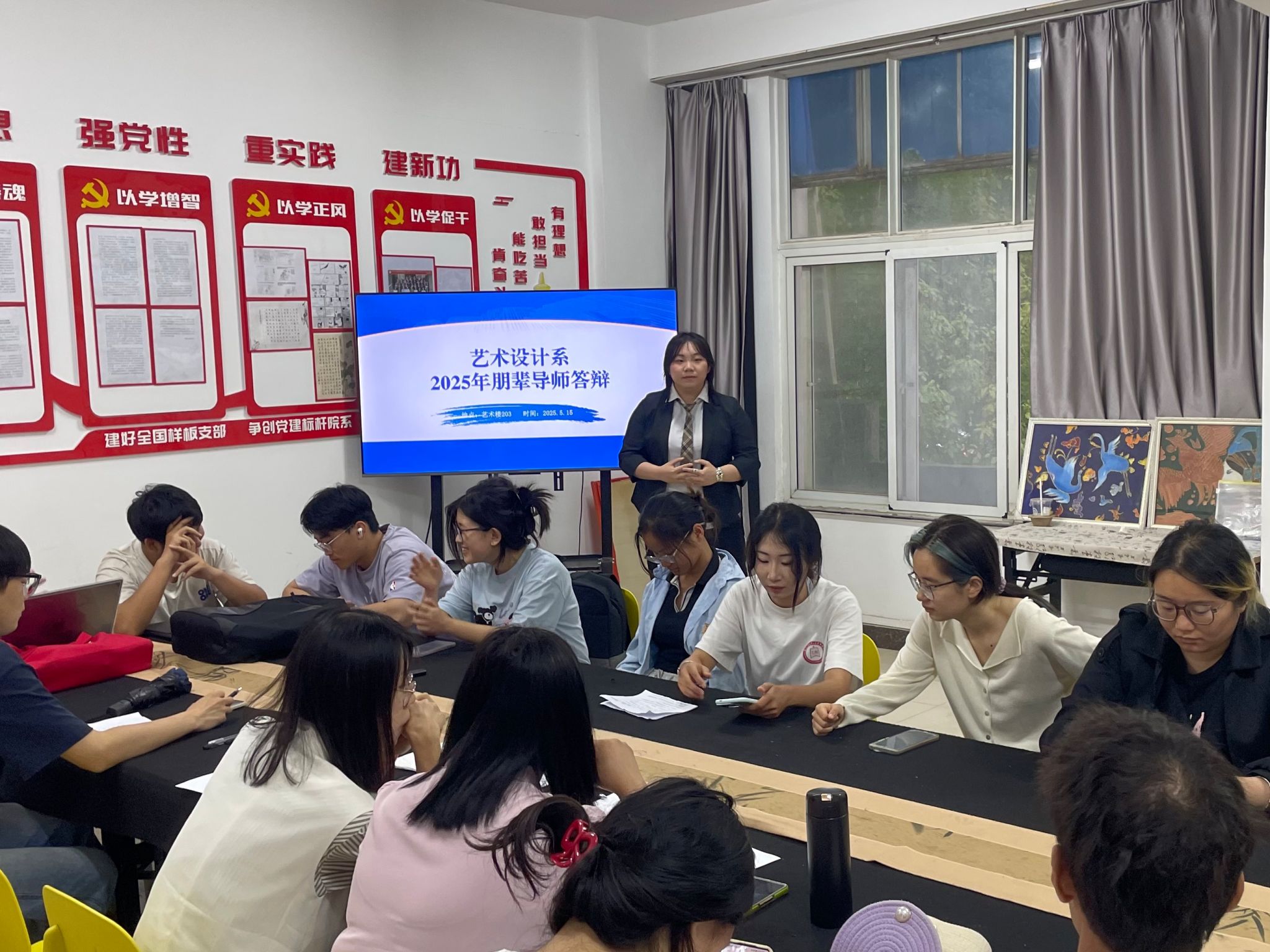 为加强艺术设计系思想政治教育和学风建设,更好地发挥大学生朋辈互助作用,5月15日中午,艺术设计系在艺术楼203举办了2025年朋辈导师答辩会。答辩会邀请系党总支副书记冯秋珍、学工办主任高瑛、团总支书记赵玥担任评委,辅导员梅心悦、彭昌盛到场聆听。