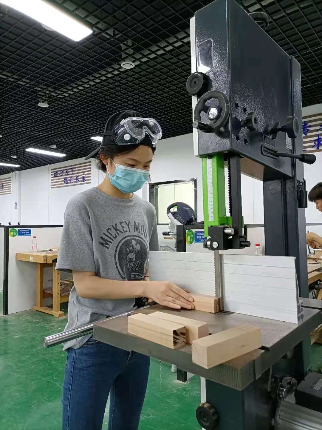 在机械设备和工具安全操作方面,实验室能提供标准的机具工作作业程序,为实践中的学员提供制度层面的规范化安全约束。实验室配置的机械设备,更注重配备主动安全防护,比如台锯就使用了安全的人体触发制动系统,在5毫秒内避免锯切伤害。配备的锯钻、砂光工作站系统,更强调双通道实现安全即停、处置响应,学员在危险情况下可迅速以使用脚踩实现设备制动。同时实验中心还配备了必要的防护手段、规范佩戴和使用,在设备工作时,借助多层面的辅助安全工具和手段,有效抑制伤害的发生,为学员提供了良好的安全操作环境。