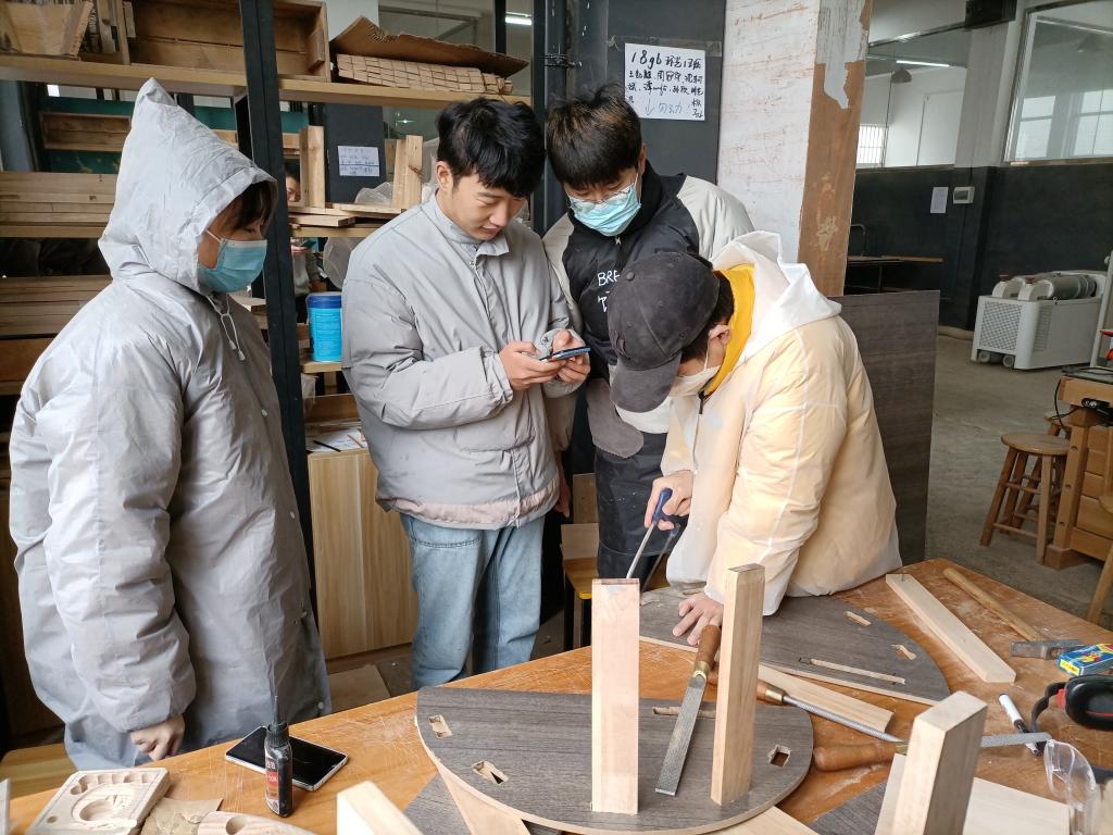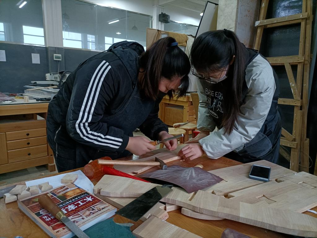 木艺创造力实验室服务于家具设计、家具设计实践、室内空间设计、环境设计、展陈设计、园林工程技术、建筑装饰材料与施工概预算、建筑模型设计与制作、软装设计、构建“木工材料~木工构造~木工设计~木工制作技术”教学体系,实现对学生进行“专业核心能力——能力培养——从认知到能力的实训教学”3个层面理论到实践的教学改革。