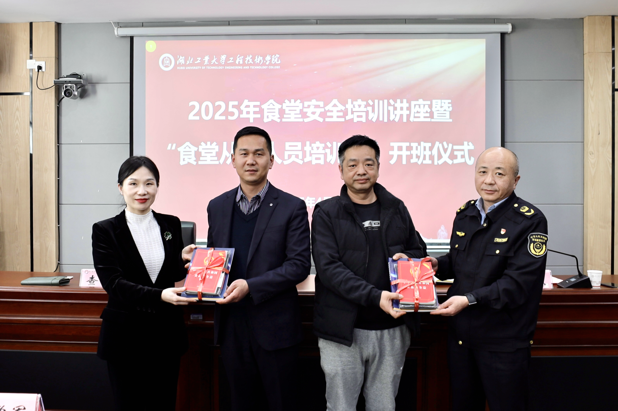 张业鹏为开班式致辞,他指出食堂食品安全直接关系师生身体健康和校园安全稳定并对管理单位和参训人员提出具体要求:一是要深刻认识食品安全重要性,做到全流程规范管理;二是以初心、匠心、爱心打造优质餐饮,不断提升膳食品质和服务质量;三是要做到学有所思,行有所效,改有所进,真正以学促干,确保培训实效。四是要构建长效管理机制,加强日常巡查,公开食品加工流程,接受师生监督,对违规操作“零容忍”,对隐患问题“严追责”。查纯、吴轶人向参训学员赠送《中华人民共和国食品安全法》《食品安全监督管理学》等相关书籍。