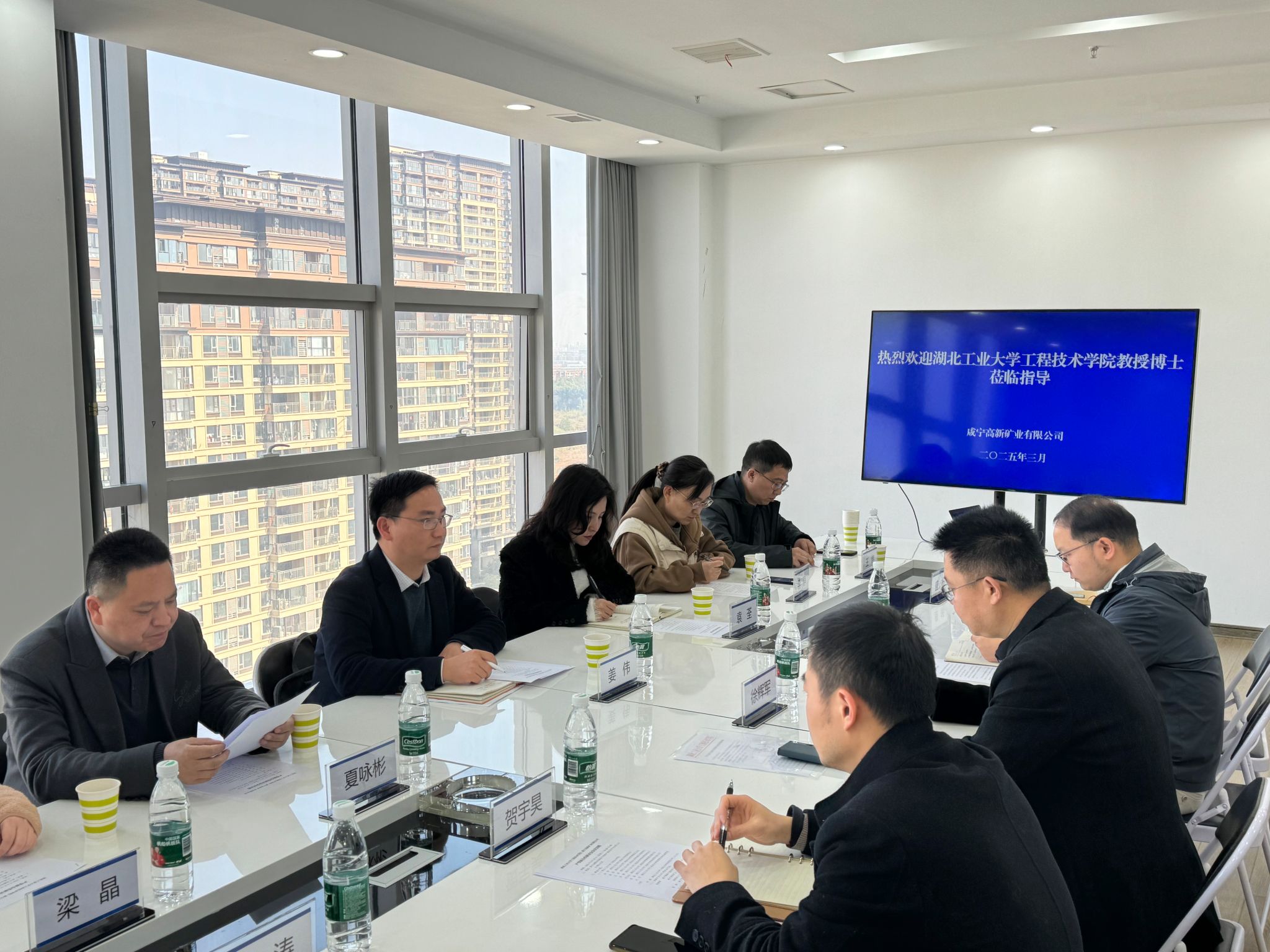 在咸宁高新矿业有限公司,总经理徐辉军介绍了公司基本情况、战略规划及科技项目储备,并提出希望借助学校在数字化技术领域的优势,共同推动矿产资源的统一管理和数据对接,促进资源优化配置,推动矿产行业智能化升级。