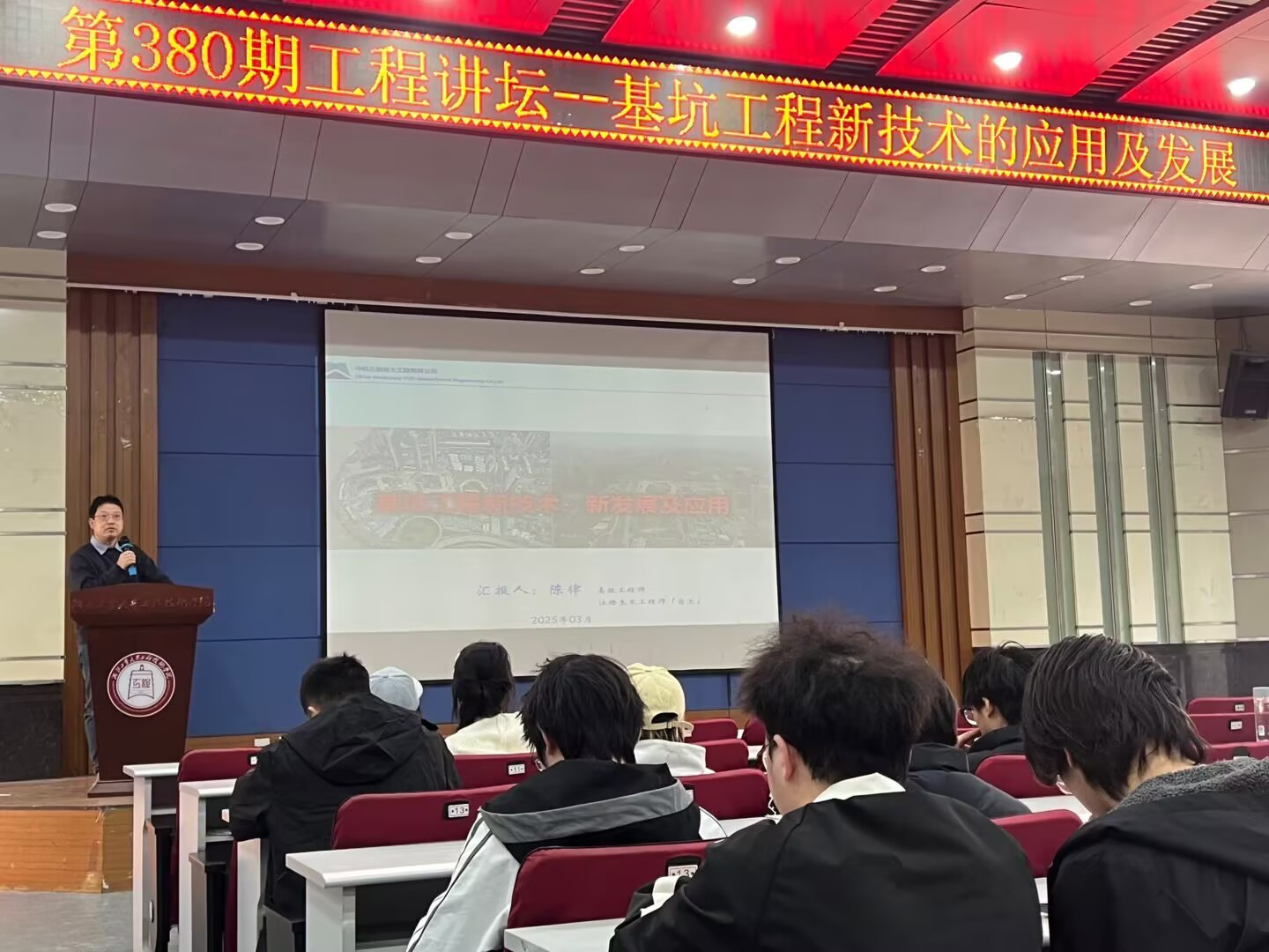 3月20日下午,学院第380期工程讲坛在工1-B205报告厅举行,特邀中机三勘岩土工程有限公司高级工程师陈律担任主讲人。