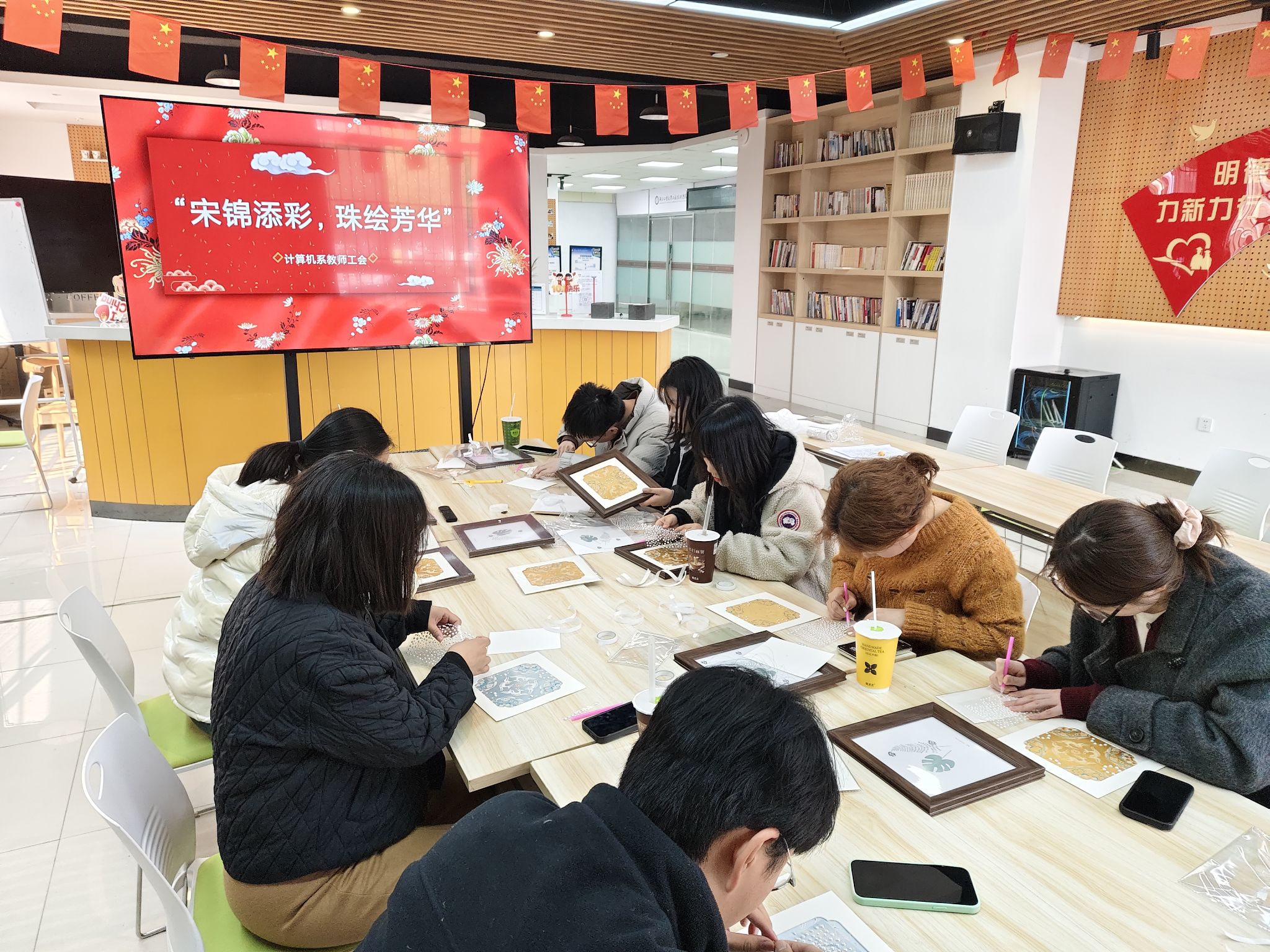 为弘扬中华优秀传统文化,丰富计算机系教职工精神文化生活,计算机系工会于3月7日在西区一站式活动中心开展宋锦珍珠画手工体验活动。