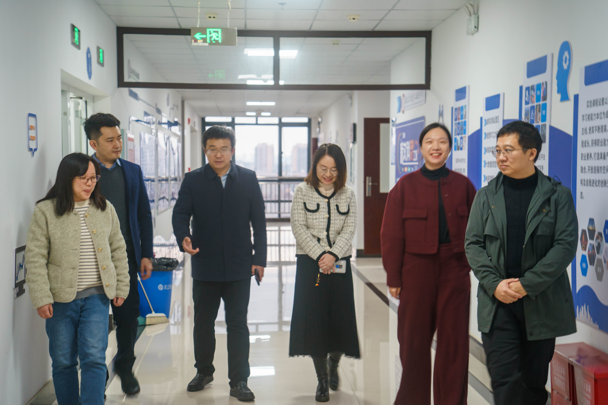 彭华涛一行参观了我院管理系新文科智慧学习工厂等实训基地,并就学生创新创业议题展开深入交流。会上,彭华涛介绍了武汉理工大学“双创”工作的实施现状,他强调,学院在培养学生创新精神、创业意识和能力等方面应主动作为,给学生提供更多优质平台和机会;结合武汉理工大学创业学院人才培养和课程建设,彭华涛分享了武汉理工大学的成功经验,并探讨了存在的实际问题。