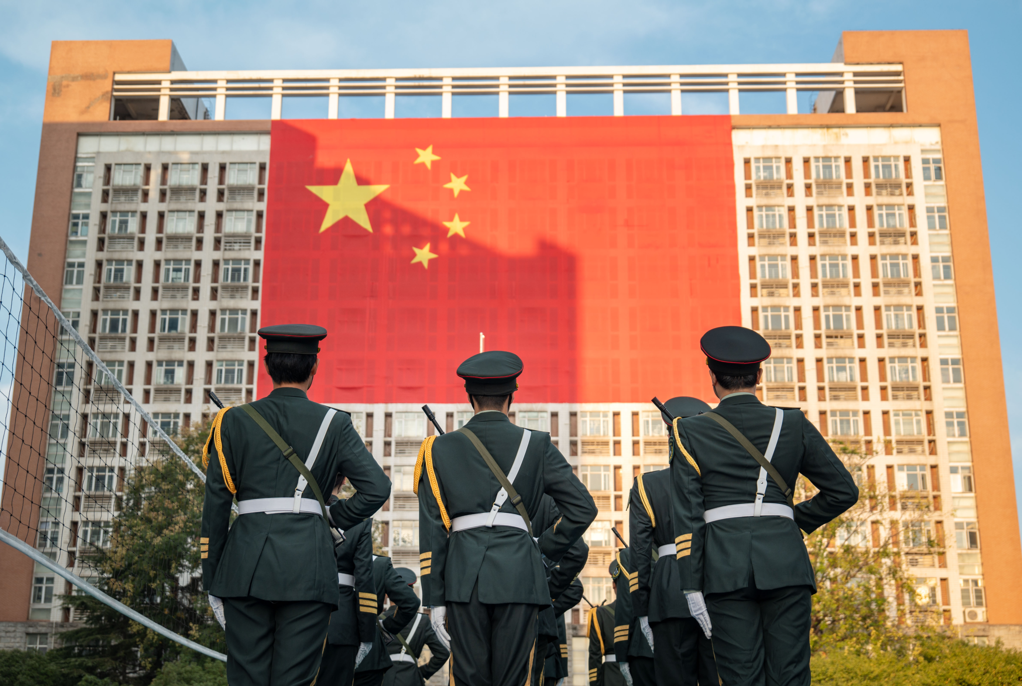 晨曦破晓,国旗护卫队迈着铿锵有力的步伐,护卫着国旗正步走向升旗台。全体师生代表面向国旗肃立致敬。在雄壮的义勇军进行曲中,升旗手振臂出旗,现场师生齐声高唱国歌,注视着五星红旗冉冉升起,共同祝愿伟大祖国更加繁荣昌盛。