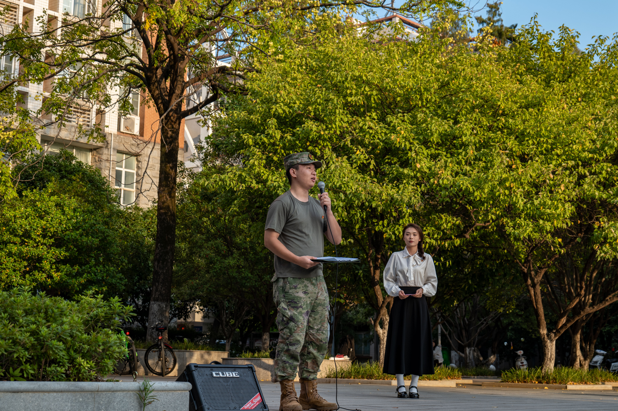 橄榄绿志愿服务队团支部书记耿浩策在国旗下讲话中提到,红色是血脉里永不褪色的赤诚,爱国从来不是一种潮流,它是奠定在骨子里的责任,我们要明晰时代责任,担起时代大任,加强自身革命,于实践中磨练意志,永葆“赶考”的清醒和坚定。