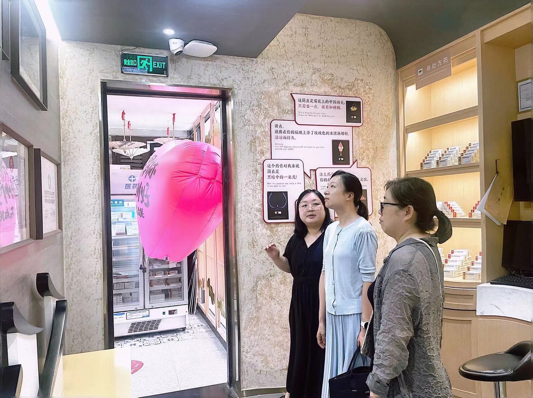 马应龙体验馆相关负责人带领王婵一行参观企业工作环境,介绍企业的主要业务、运营状况、发展历程和前景、薪资待遇等情况,并反馈了学院校友专业技能好、学习能力强、职业素养高、综合素质优。王婵就学院和管理系的基本情况、学生就业期望等方面作了介绍。双方都表示希望通过校企交流合作,以实现更好的人才培养和人才输出。