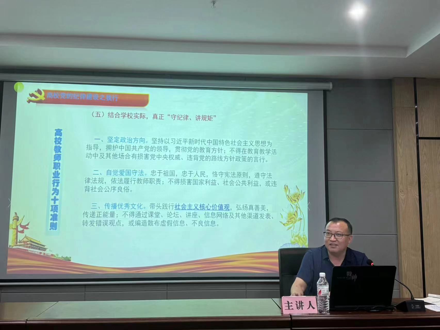 最后,宋建林提出高校教师要结合高校教师职业行为十项准则与习近平总书记提出的教育家精神的六个内涵方面来督促自己,做到真正的“守纪律、讲规矩”,在知行合一、追求实效当中推动自我学习和事业发展。与会同志还集中观看了警示教育片。鲜活的案例引起教职工深刻地反思,使党纪学习的效果得到进一步的巩固。