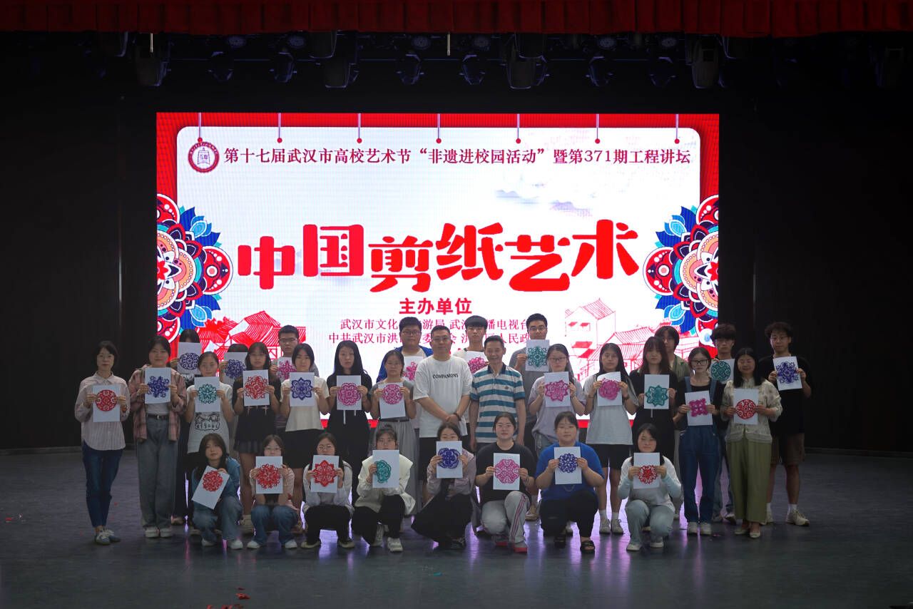 沈松柏大师四十年如一日,将剪纸艺术融入自己的生命之中,只为让更多的人接触了解并弘扬“汉派剪纸”文化。本次以中国剪纸艺术为主题的工程讲坛的成功举办,让学生们透过剪纸艺术,了解非遗、认识非遗,感受到非物质文化遗产的独特魅力。