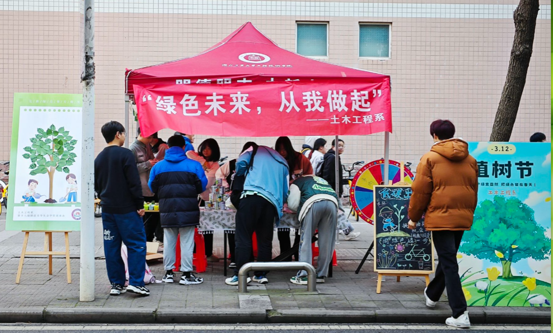 “沐春风,种绿植”,不负春光。为进一步倡导绿色低碳的生活方式,普及爱护环境的理念,3月12日,土木工程系在工程二号楼组织开展“绿色未来,从我做起”植树节主题活动。