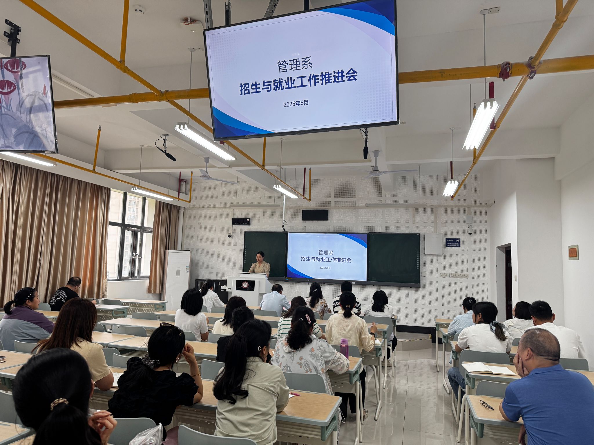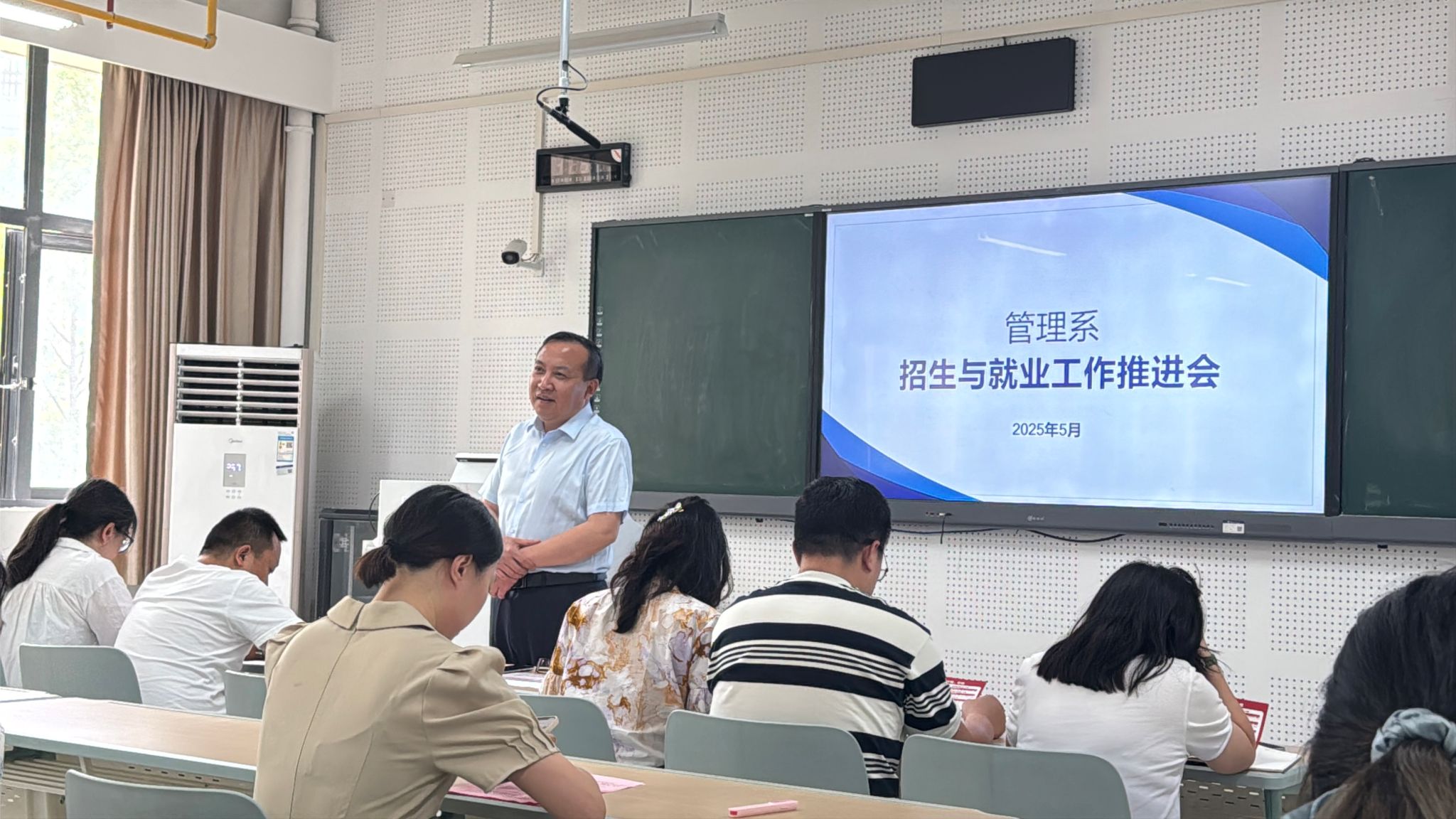 为统筹推进招生宣传与毕业生就业工作,构建全员参与、协同联动的长效机制,5月9日,管理系在南综502召开2025年招生与就业工作推进会。学院纪委书记宋建林出席会议。