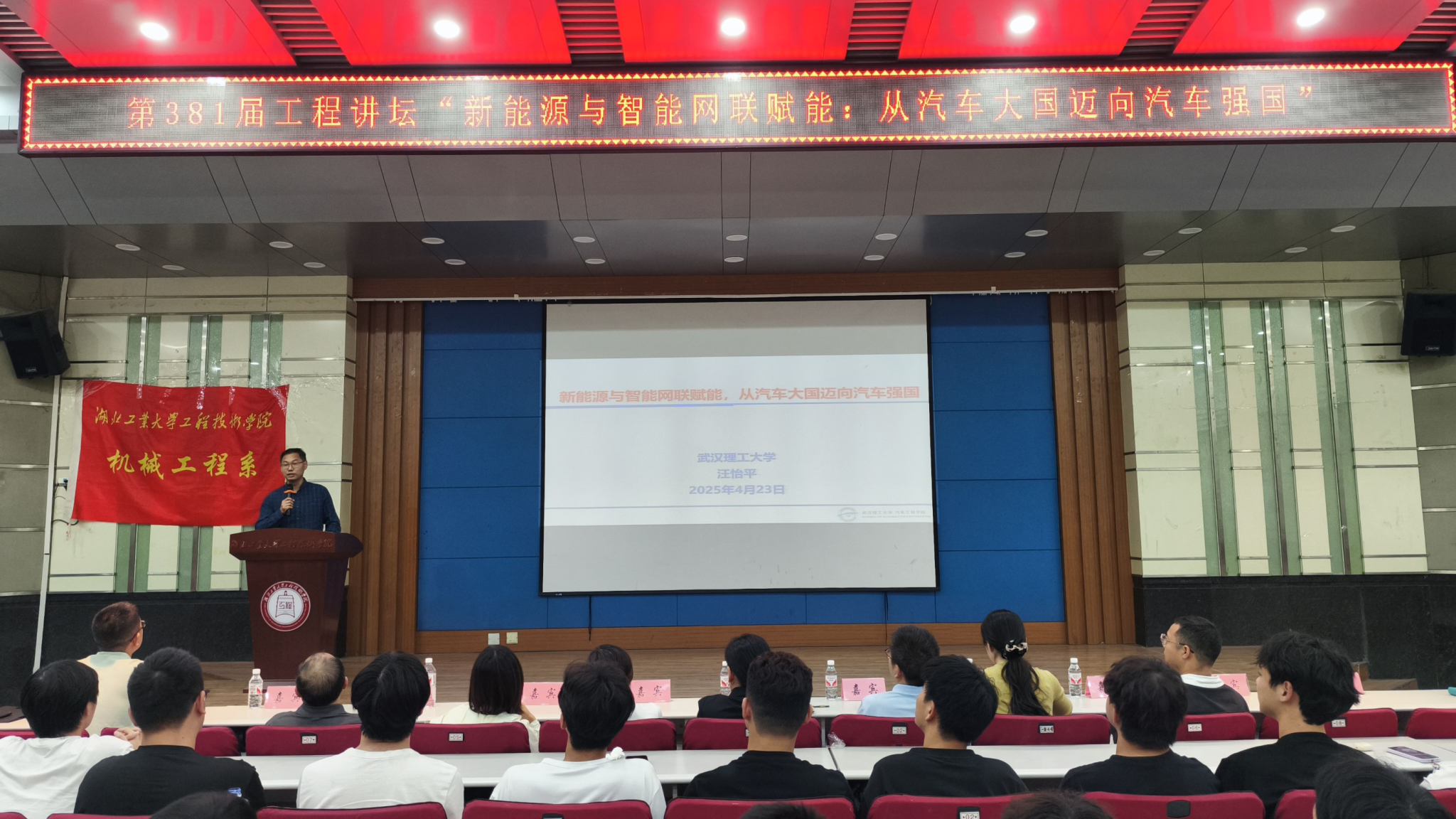 4月23日下午,机械工程系在工一B205报告厅举办第381期工程讲坛。本次讲坛特邀武汉理工大学汽车工程学院副院长、博士生导师汪怡平教授担任主讲嘉宾。