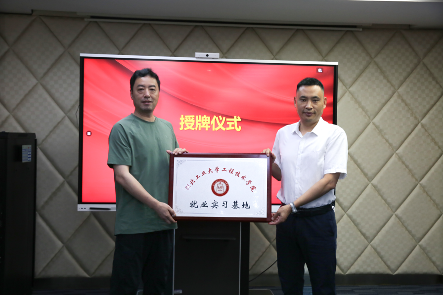 曹仲伟向两点十分公司授予“就业实习基地”牌匾,并为高远颁发“校友导师”聘书。