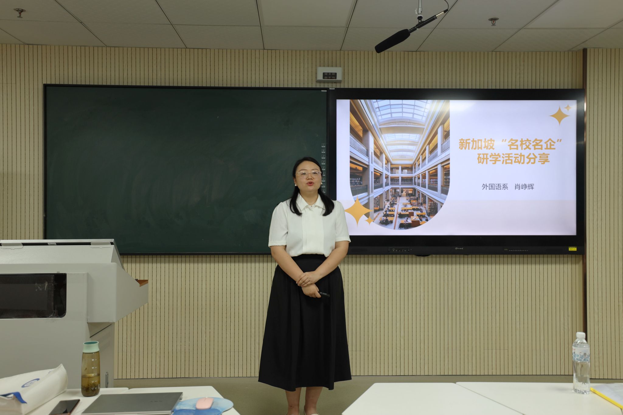 教师代表肖峥辉通过丰富的图文资料和生动的视频影像,从新加坡先进的职业教育体系、注重实践与创新的课堂模式,到多元文化交融的校园氛围,带领在场教师沉浸式回顾了新加坡访学之旅。
