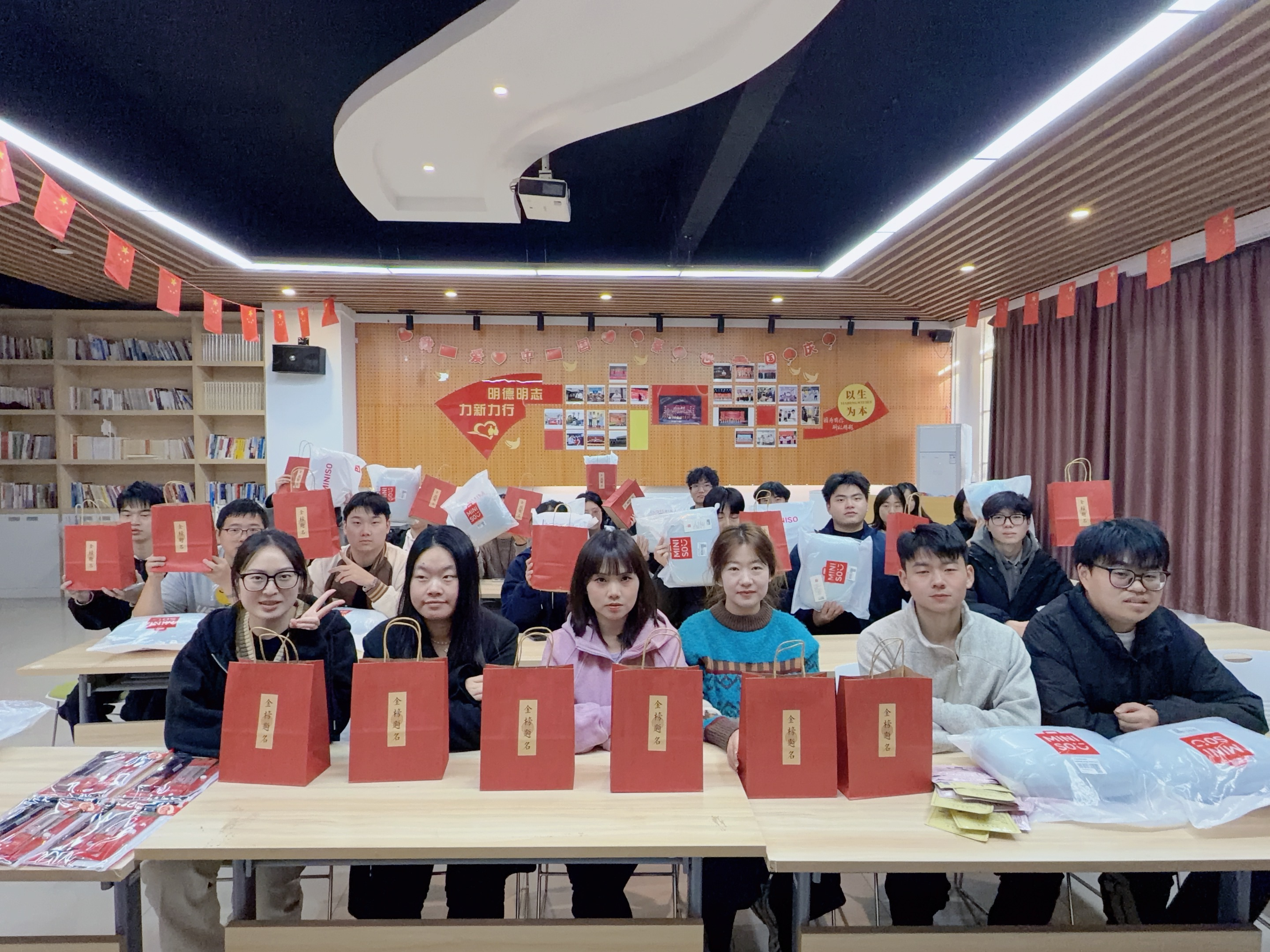 随后,老师们向同学们发放了“考研加油包”。礼包中包括午睡枕,旨在提醒同学们注意劳逸结合;文具套装,以助力考试作答顺畅;以及暖贴,在寒冬中送上温暖。每一份礼物都寄托着老师们的关心与期望,与小红花一起,为同学们带来信心与鼓励。