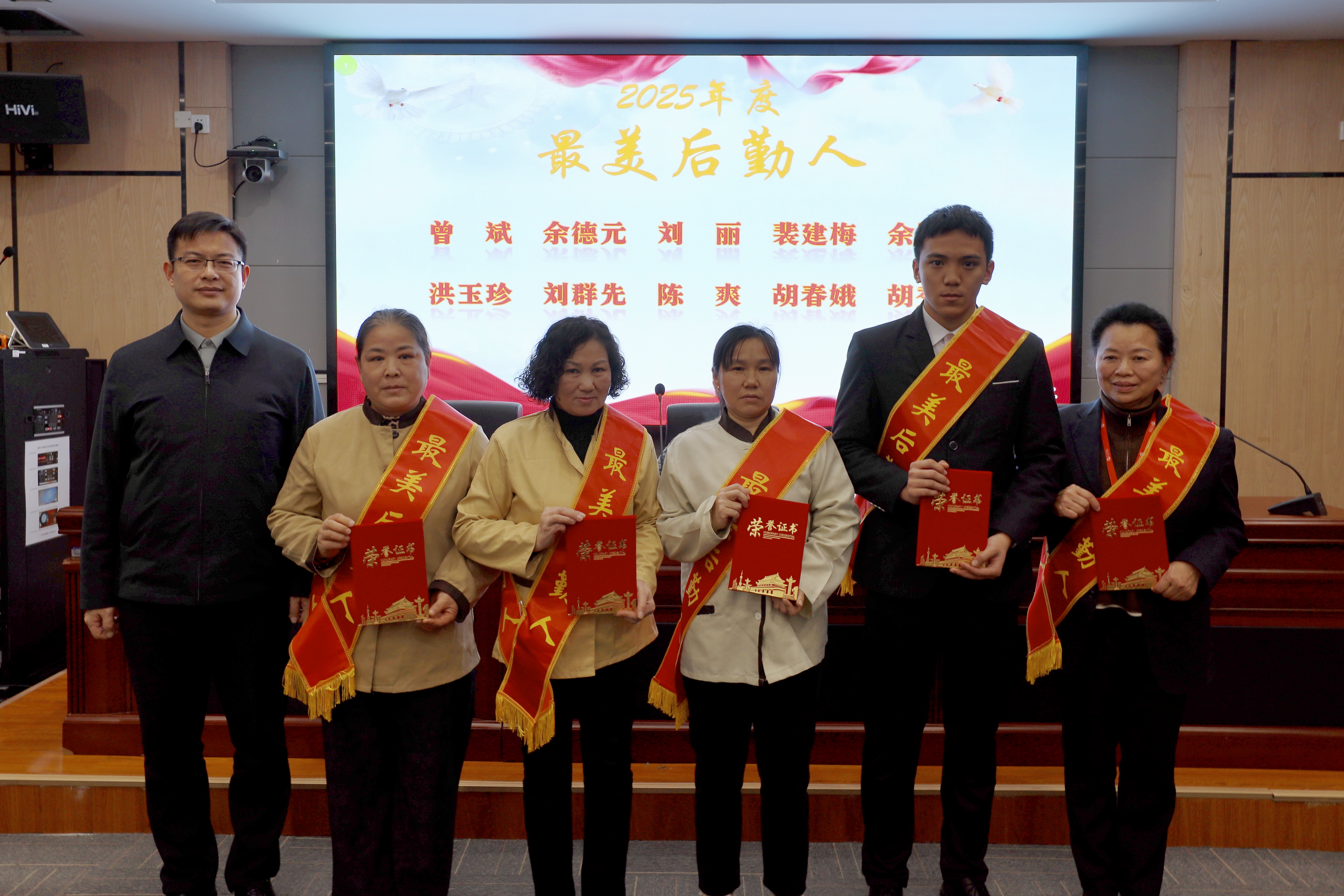 在表彰环节,余愿为胡秀菊、余德元等“最美后勤人”获奖代表颁发荣誉证书;查纯为刘丽等“精品值班岗”、南苑三食堂詹记码子粉“精品窗口”、王文华“优秀维修服务岗” 等先进集体及个人颁发奖牌,充分肯定了他们在后勤服务工作中的突出贡献。