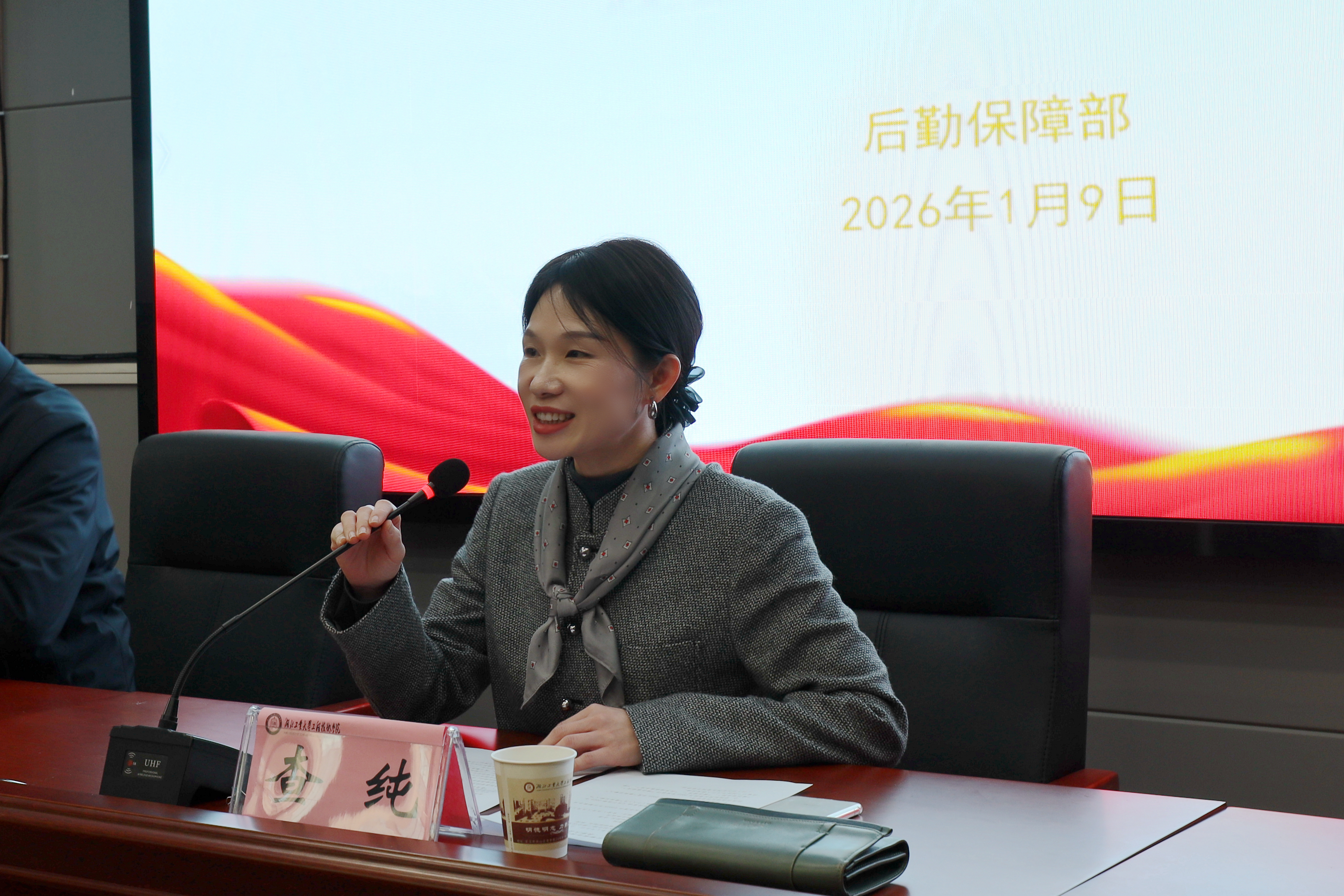 查纯在总结讲话中指出,2025年后勤保障部始终秉持“安全为基、服务为本、效能为先”的工作主线,在党建引领、安全保障、办学条件优化、服务效能提升等方面取得了显著进展。她表示,后勤工作具有鲜明的育人属性,干部职工应视为“不上讲台的教师”,以优质服务潜移默化引导学生树立正确的价值观与劳动观;后勤队伍是学校发展的“压舱石”,必须始终以师生满意为标尺,全力保障教学、科研和师生生活。她强调,全体后勤人员应继续保持“时时放心不下”的责任意识,聚焦师生急难愁盼问题,持续推进服务精细化、管理规范化,在提质增效中展现新作为,共同书写后勤服务高质量发展的新篇章。