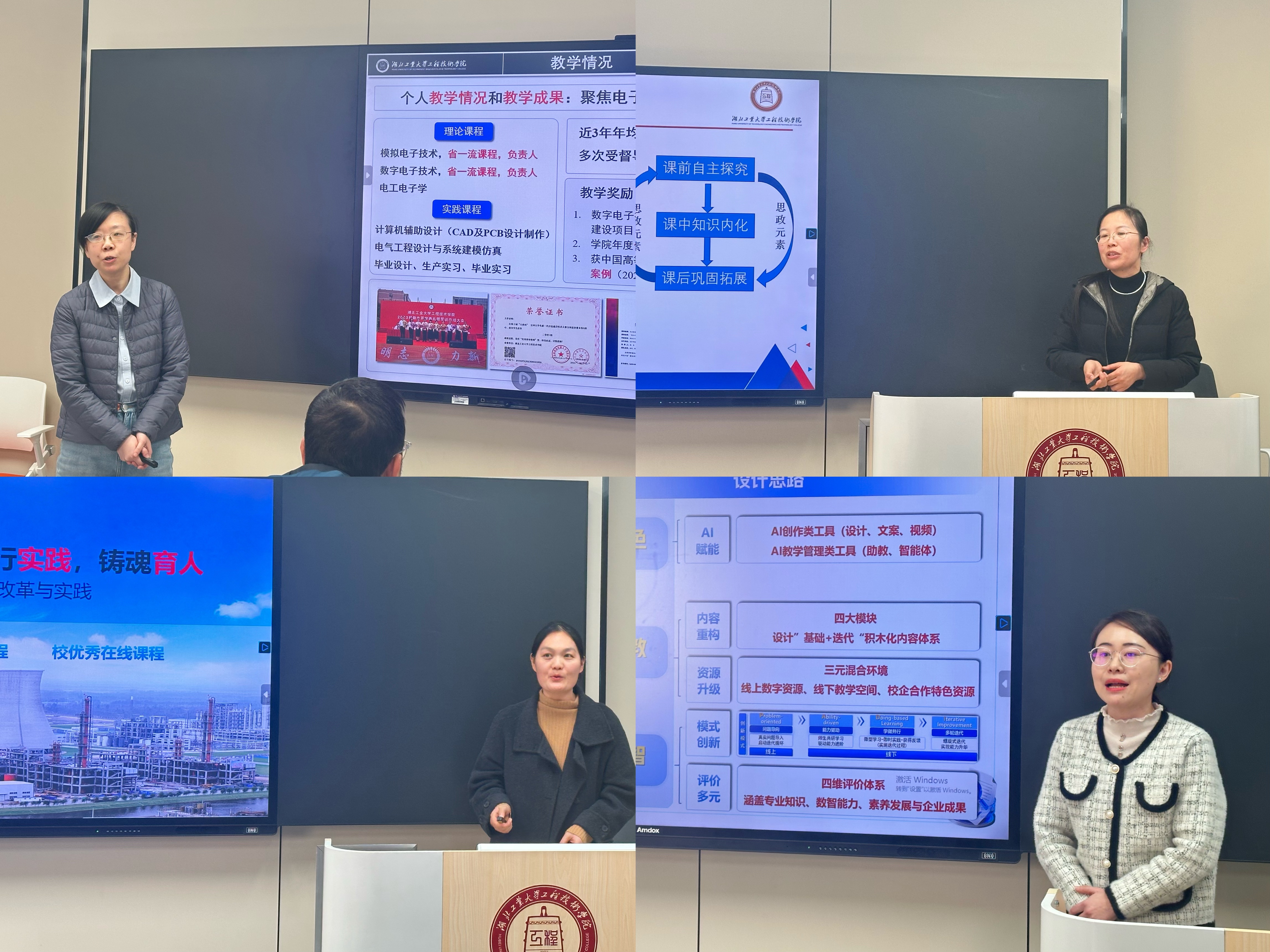 教学展示环节中,入围教师在工2-C308智慧教室依次登台,围绕教学基本情况、核心教学特色等内容,结合线上线下混合式教学手段,进行了生动详实的教学分享与成果汇报,充分展现了我院教师扎实的教学功底与创新的教学理念。院内外评审专家组恪守“公平、公正、公开”原则,将师德师风作为核心考查维度,综合考量教师的教学态度、专业水平与教学贡献,最终确定获奖名单。
