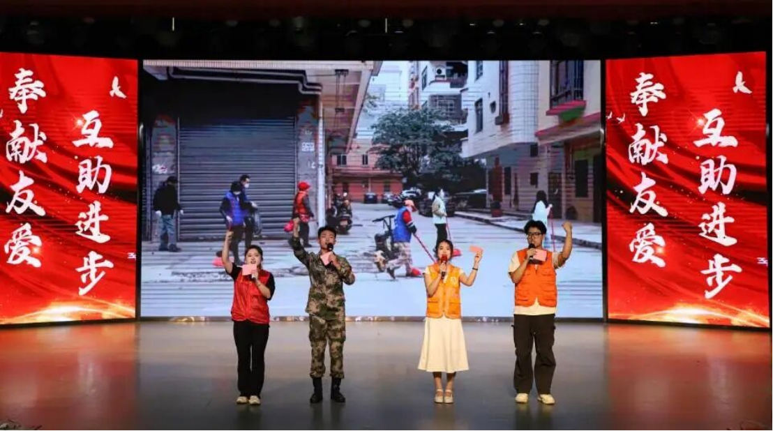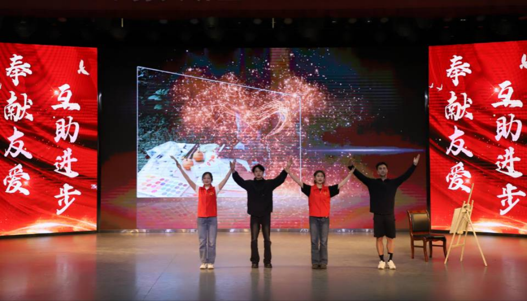 第三篇章,青春故事。武汉设计工程学院五色阳光志愿服务队、荆门市义务工作者联合会带来《用爱治愈,创艺赋能》舞台剧,演绎艺术疗法如何介入精神障碍社区康复服务,用爱温暖患者的青春故事。