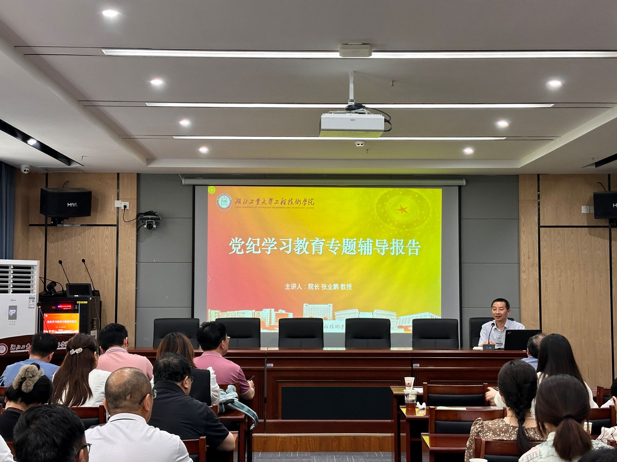 531日,学院院长张业鹏教授为机械工程系、电气与电子工程系党员师生作党纪学习教育专题辅导报告。机械工程系、电气与电子工程系理论学习中心组暨党纪教育读书班成员、全体教职工、校企合作驻校教师及学生党员代表参加学习交流,党课由机械工程系党总支书记李津主持。