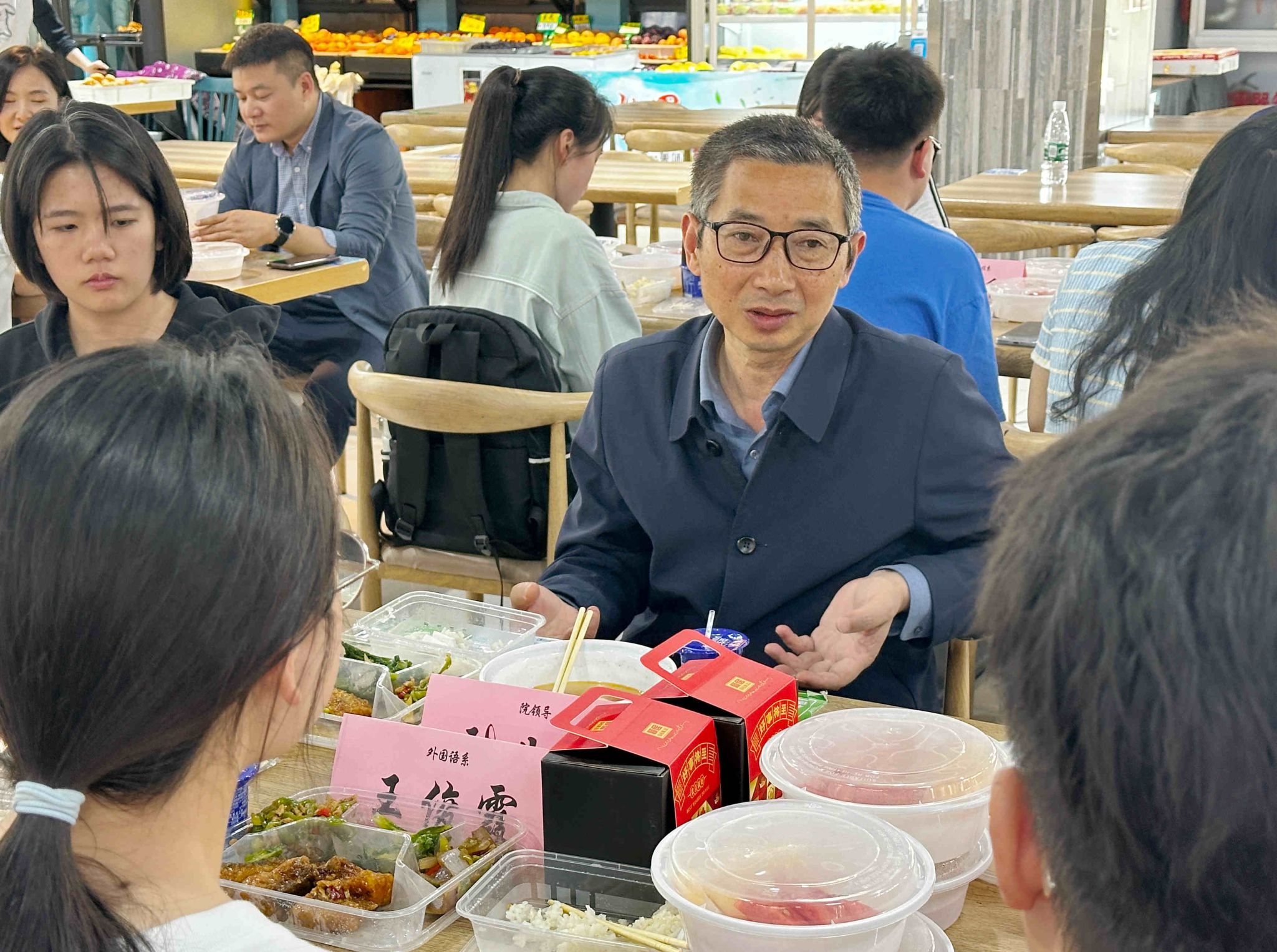5月6日中午,博雅园食堂一片欢声笑语,气氛温馨,学院院长张业鹏、党委书记朱爱军与学生代表共进午餐,共话成长、共谋发展。
