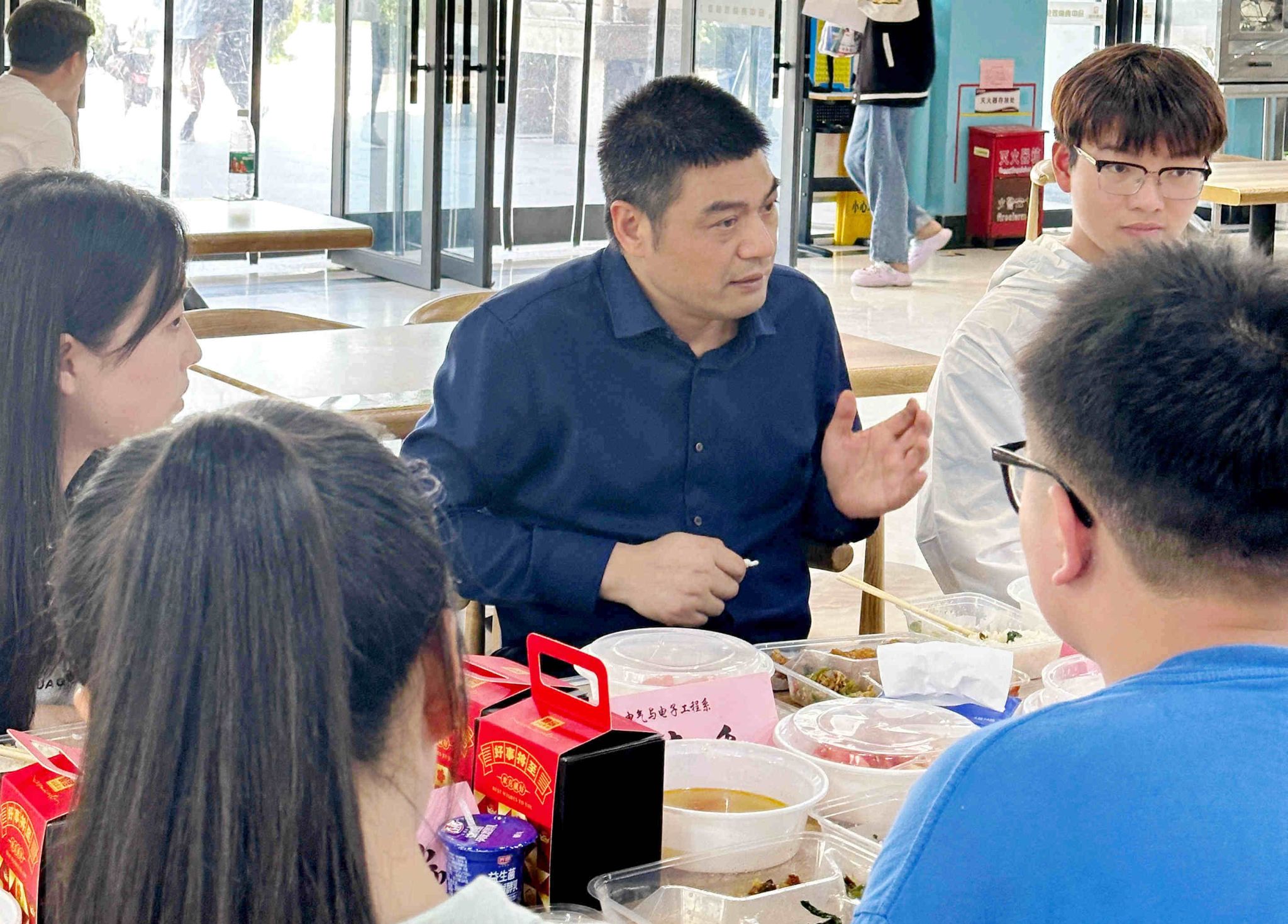 “你们在专业学习上适不适应?”“你们对课程的安排有什么想法?”“食堂的饭菜是否新鲜可口?”用餐时,学院领导与同学们一边进餐一边交流,亲切询问大家的学习生活情况。