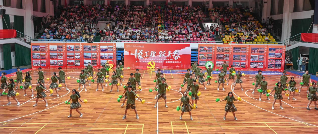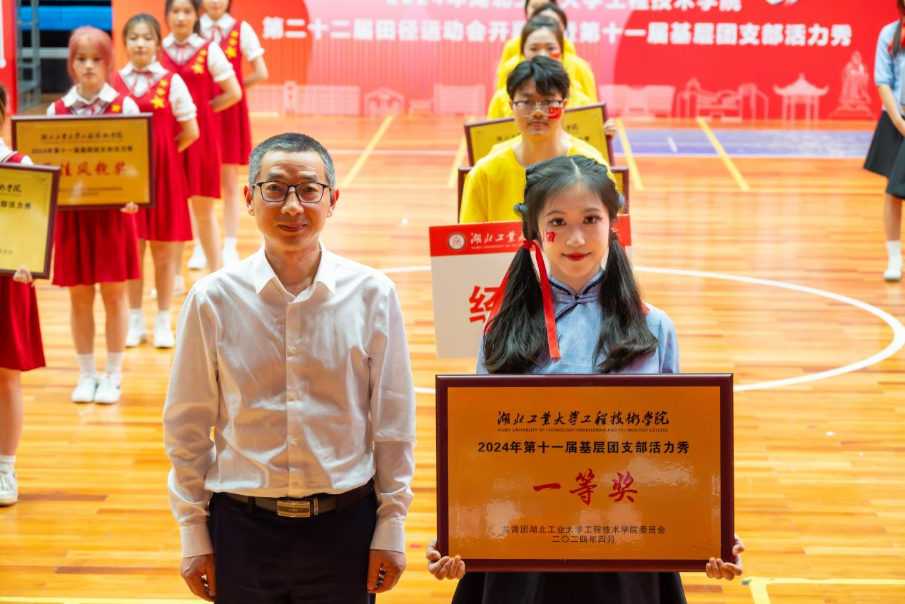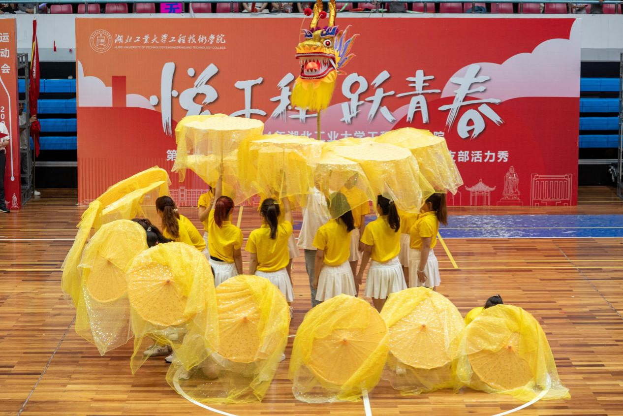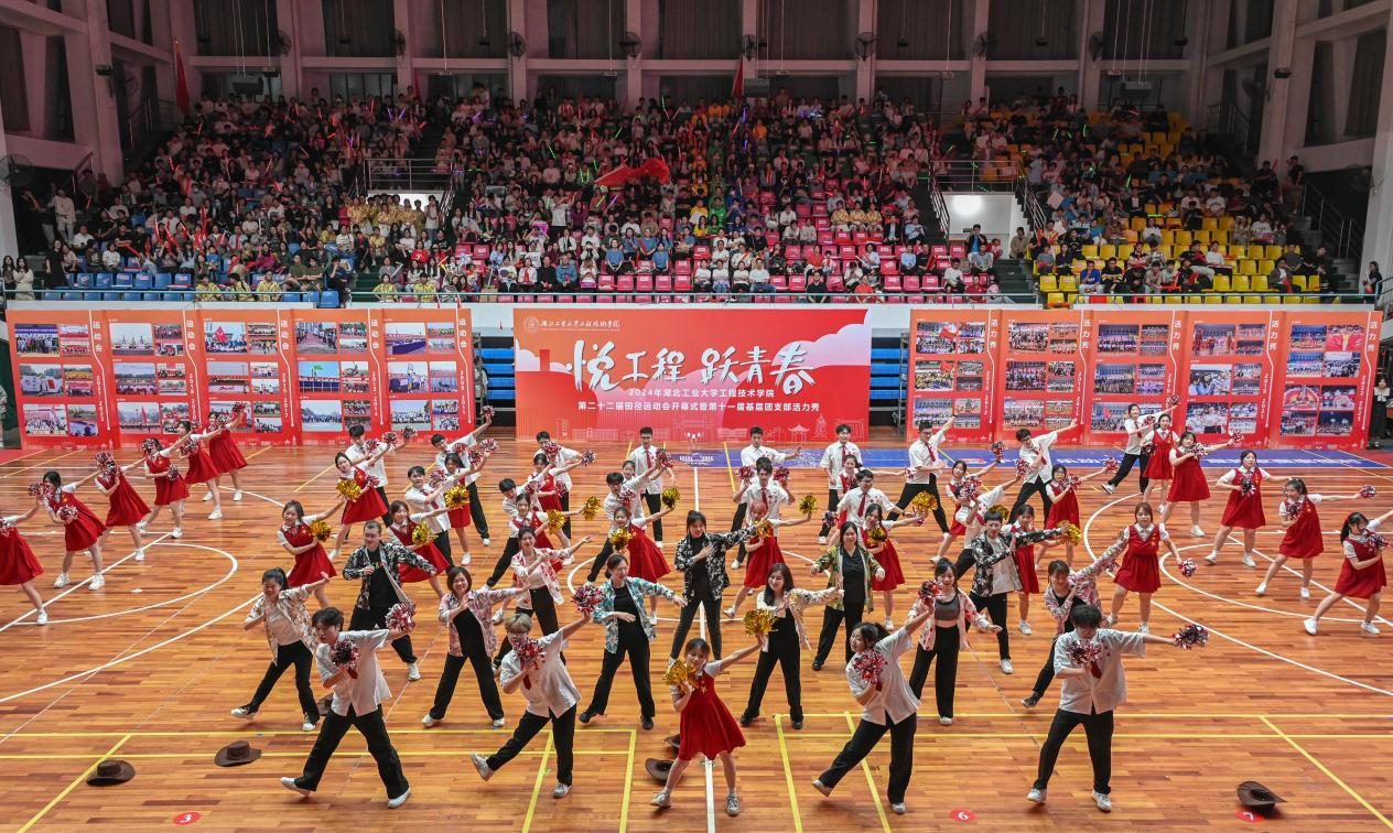 古韵十足的伞舞、扇舞,气势磅礴的剑舞、狮舞,青春靓丽的啦啦操、花样体操……在体育馆里上演一场青春气息洋溢的基层团支部活力秀。4月18日晚上7点,2024年湖北工业大学工程技术学院第二十二届田径运动会开幕式暨第十一届基层团支部活力秀隆重举行,全体院领导出席活动。学院中层干部和校企合作单位负责人,近二千名师生参加开幕式。
