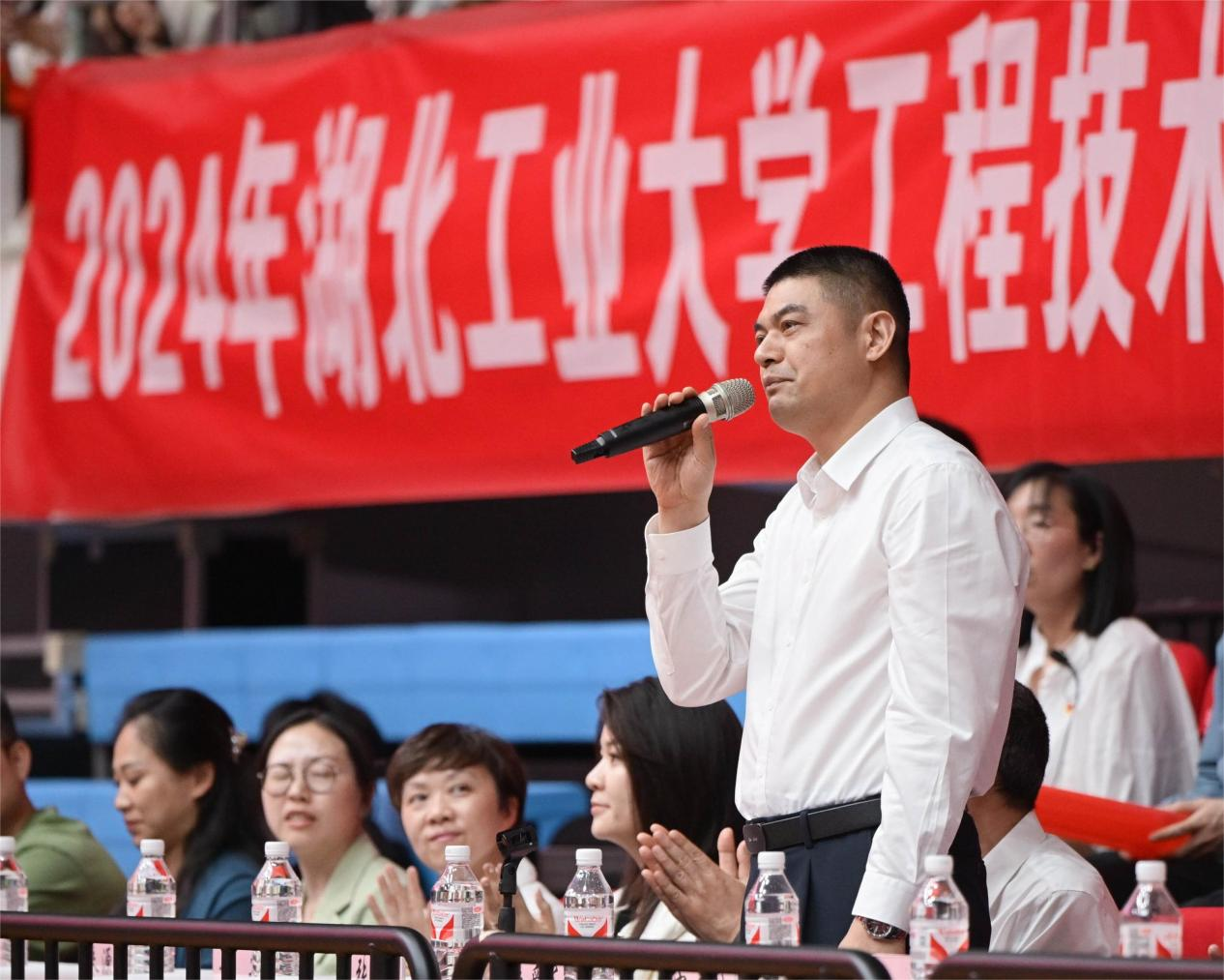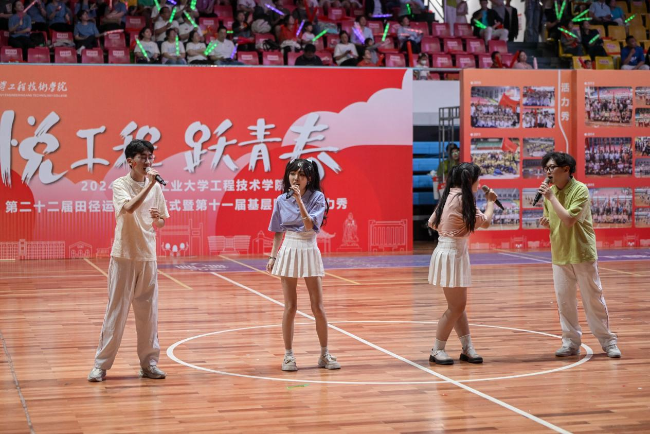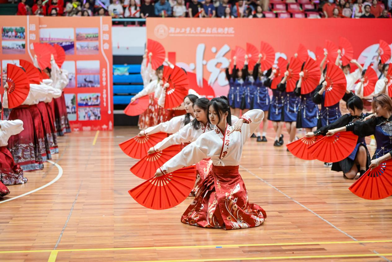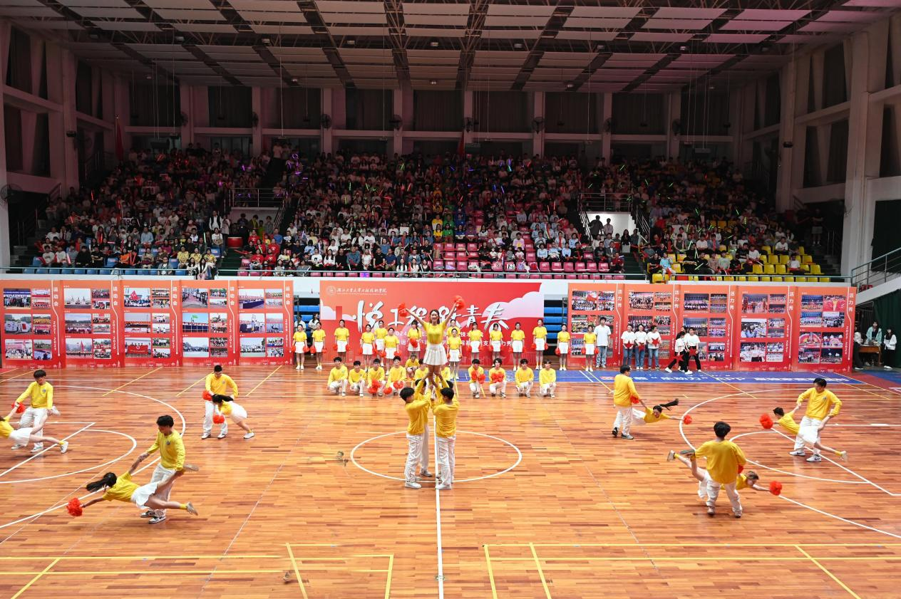 古韵十足的伞舞、扇舞,气势磅礴的剑舞、狮舞,青春靓丽的啦啦操、花样体操……在体育馆里上演一场青春气息洋溢的基层团支部活力秀。4月18日晚上7点,2024年湖北工业大学工程技术学院第二十二届田径运动会开幕式暨第十一届基层团支部活力秀隆重举行,全体院领导出席活动。学院中层干部和校企合作单位负责人,近二千名师生参加开幕式。