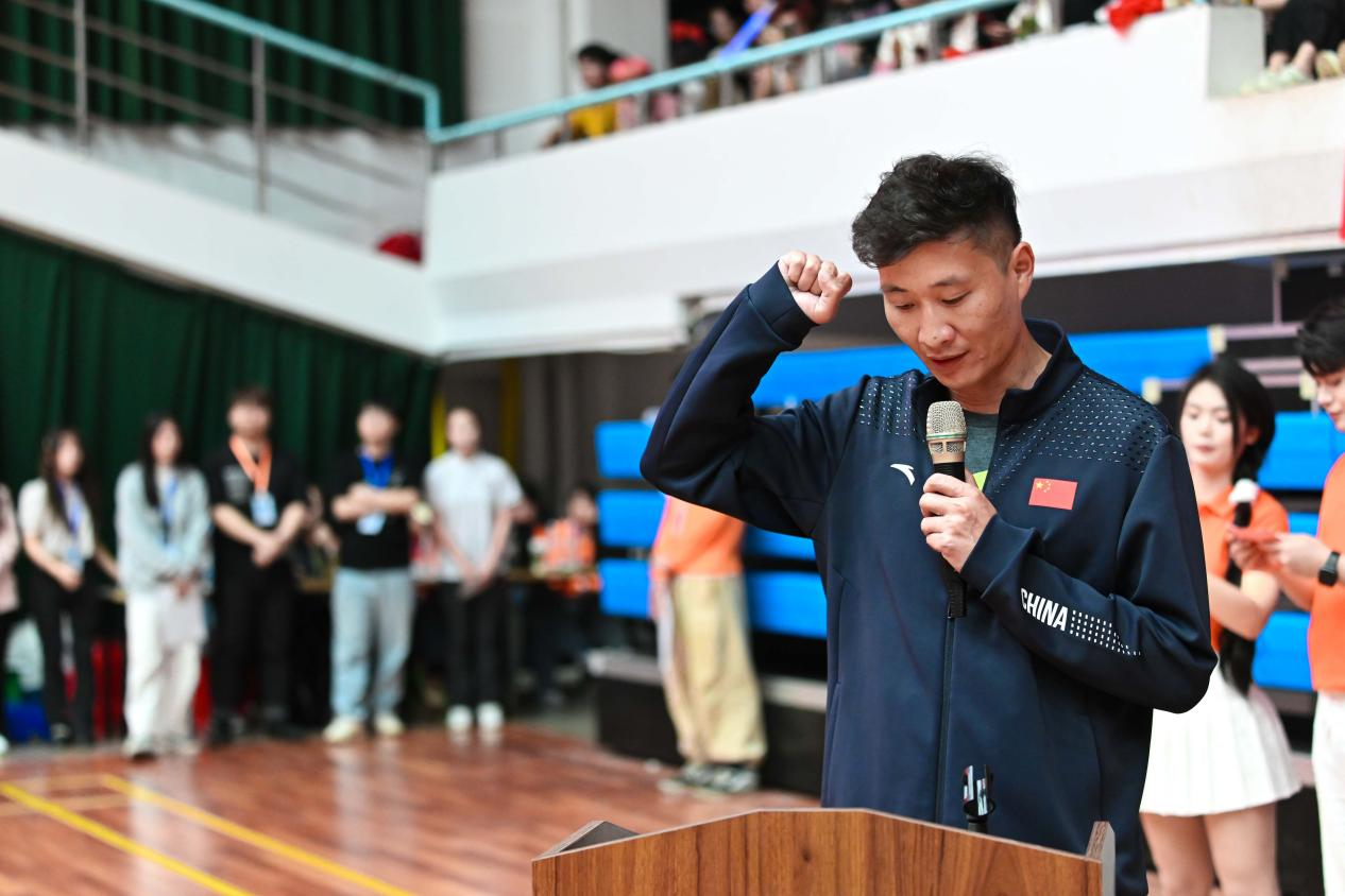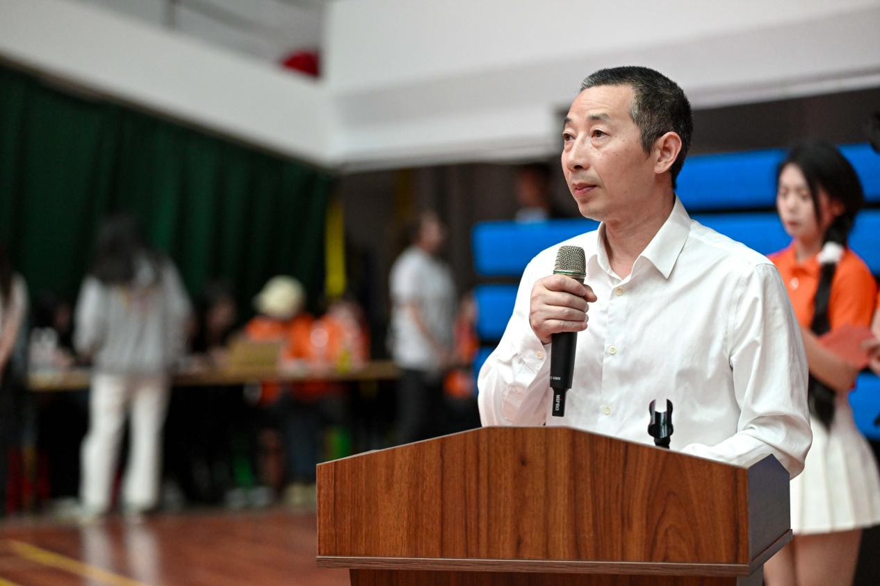 学院党委书记朱爱军宣布第二十二届田径运动会暨第十一届基层团支部活力秀开幕。