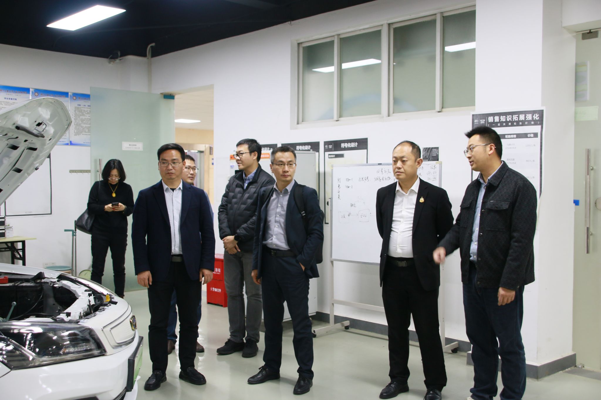 谢飞一行实地调研了学院吉利新能源汽车产教融合实践基地的建设情况,详细了解学生实践能力培养体系和毕业生就业去向等多方面内容。