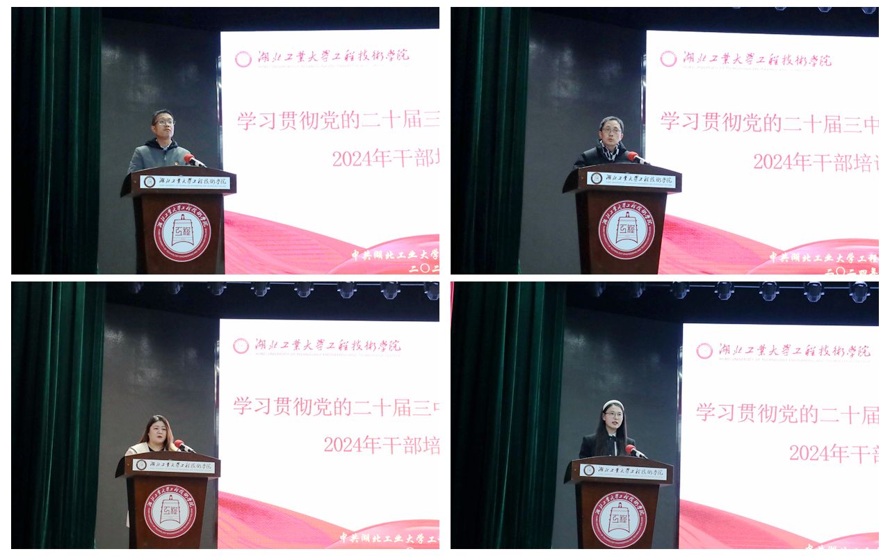中层干部优秀学员代表黄科以《初心如磐,砥砺奋进》为题分享了自己在培训学习过程中深刻体会到作为学院中层干部所肩负的责任和使命;新任干部优秀学员代表兰鹏以《根深叶茂:以校、师、生共筑教育之树》为主题阐述了如何将培训成果融入到日常学生学业规划、课程教学、实习就业、校友联络等工作中去;青年管理干部优秀学员代表刘姝荻以《全会之光照前行培训之力促奋进》为题分享了自己作为行政管理人员将把所学所思所悟运用到工作中,进一步提升服务意识,探索教学管理新思路,创新教学服务新方法,做好全面深化改革的实践者;党务干部优秀学员代表魏吟秋围绕《以青春之力为全面深化改革着笔增色》分享了自己在培养和管理学生过程中的心得体会与感悟,展示了青年干部的坚毅与担当。