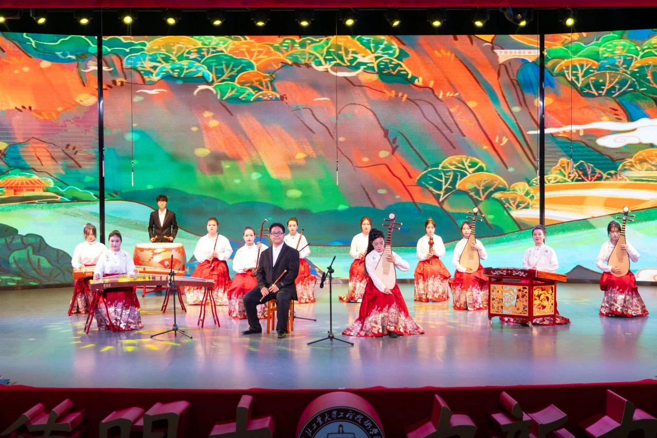10月30日,学院在南教学区博雅园报告厅举行庆祝中华人民共和国成立75周年晚会暨“诗歌里的中国”艺术思政课。本次活动邀请到湖北工业大学党委副书记胡晓艳、校学工部副部长张承涛、校团委副书记章旭出席观看。