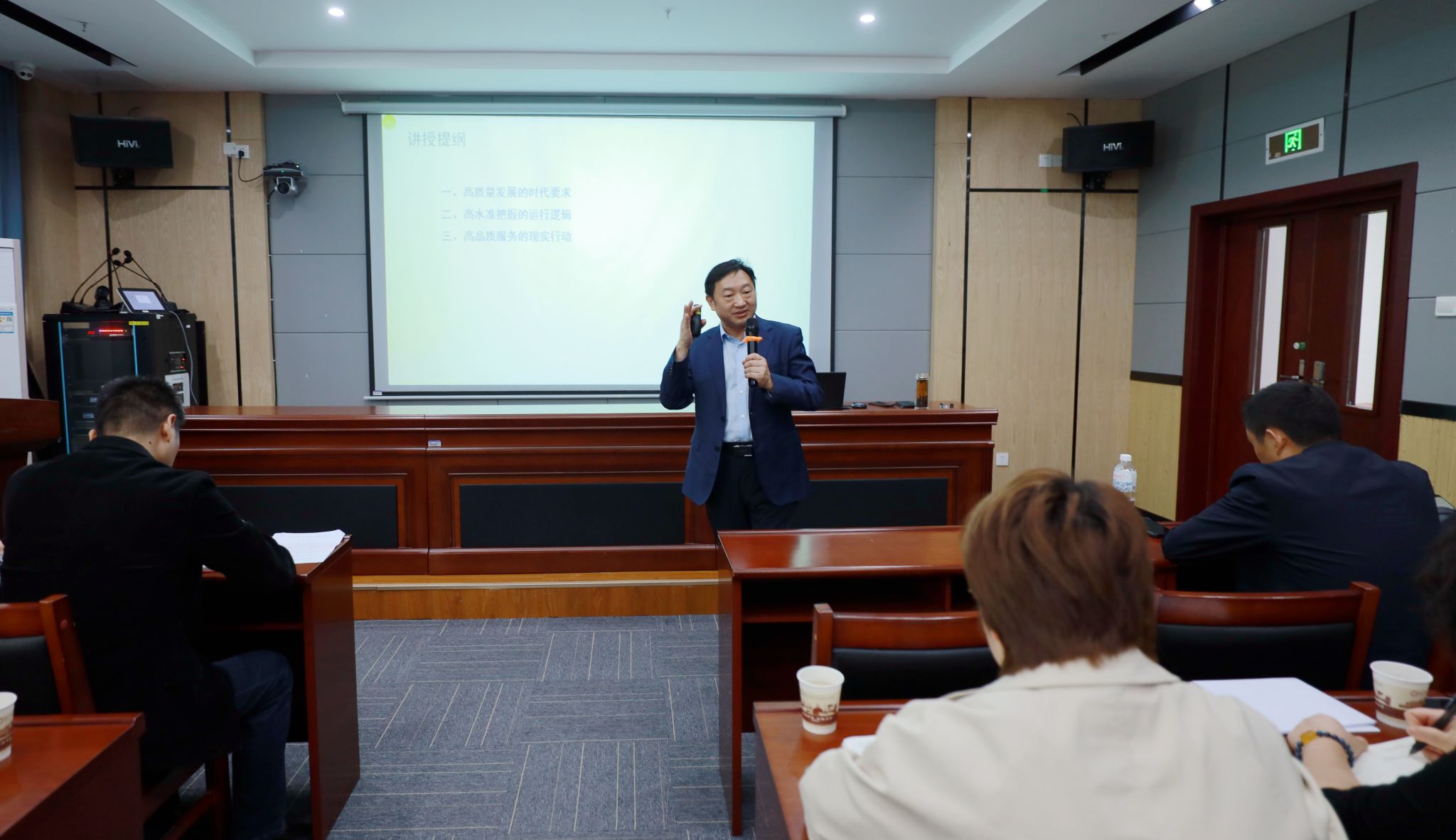 田恒平教授围绕高质量发展的时代要求、高水准把握的运行逻辑、高品质服务的现实行动三个方面,以《高品质服务推动院校高质量发展》为主题进行专题辅导报告。田恒平在报告中指出,学院中层干部在提升服务品质过程中要掌握方式方法,要有顶天立地的思维、统筹安排的意识、遵规守时的品质、热情应答的态度和沟通交流的技巧。整场报告幽默风趣,理论联系实际,列举了大量现代行政管理和教育管理中的生动事例,折射了校长治校的管理智慧和艺术。