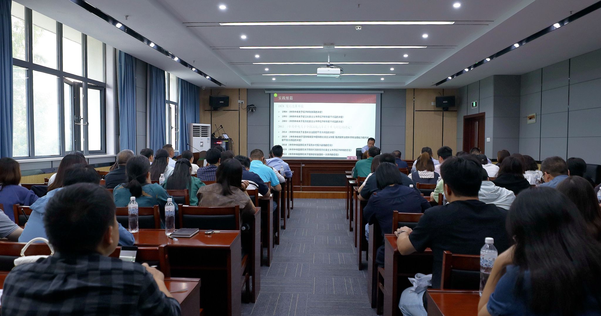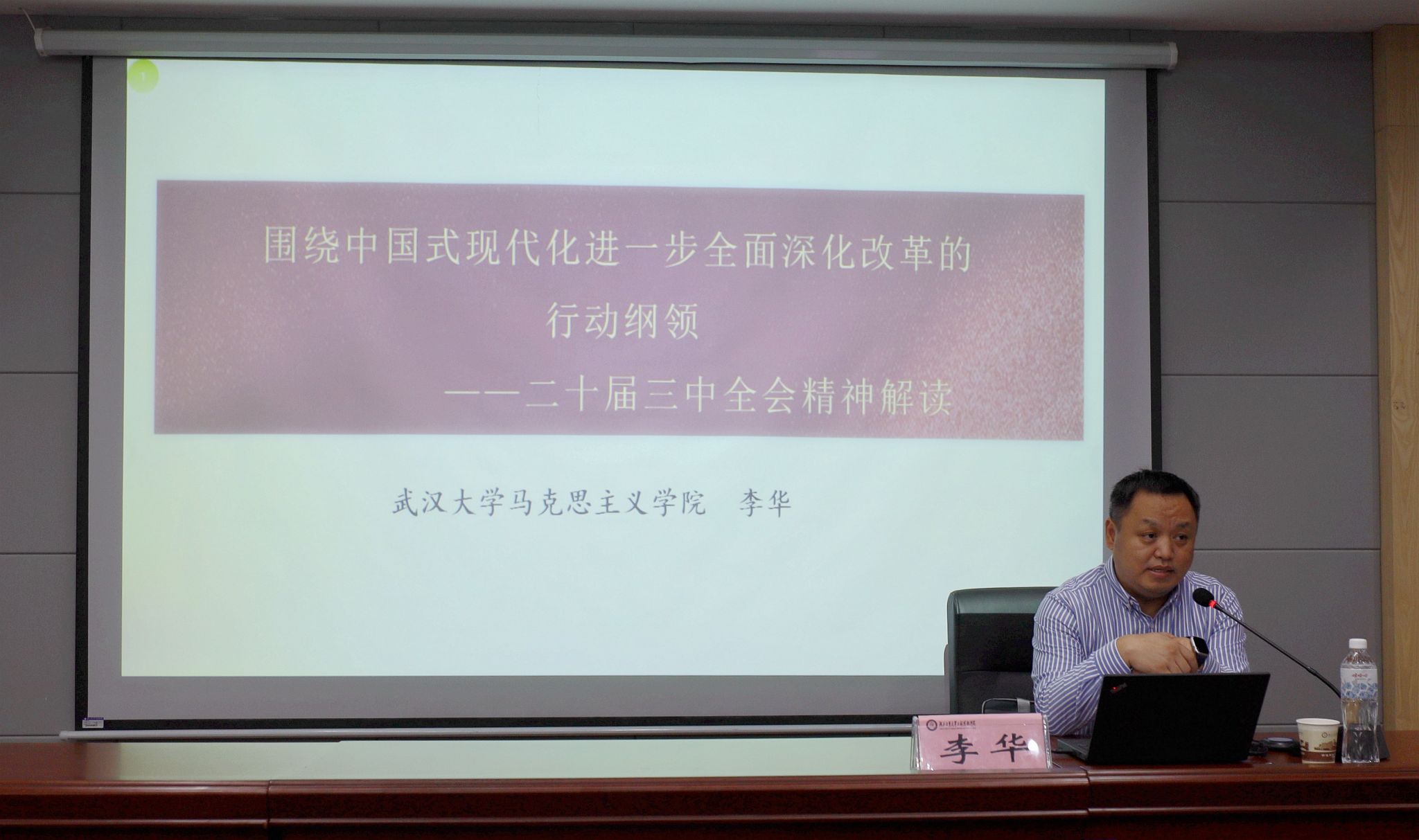 10月15日下午,党的二十届三中全会精神专题宣讲会暨中层干部培训会在学院综合楼202会议室举行。湖北省中共党史学会副秘书长、武汉大学马克思主义学院教授李华来校作专题宣讲报告。学院党委书记朱爱军主持会议,院领导和全体中层干部参加学习。