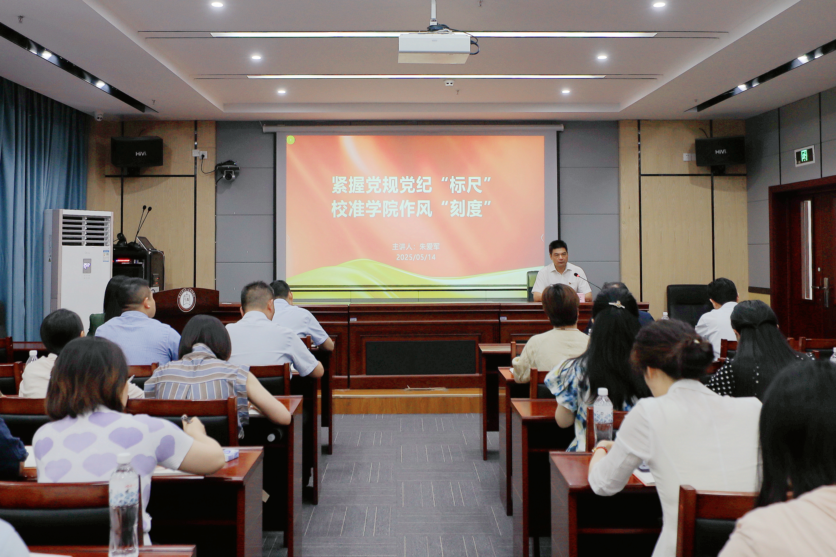 在专题党课上,朱爱军以《紧握党规党纪“标尺”,校准学院作风“刻度”》为题,从“了解深入贯彻中央八项规定精神学习教育重要内容”“认识深入贯彻中央八项规定精神学习教育重要意义”“把握深入贯彻中央八项规定精神学习教育目标任务”“推动深入贯彻中央八项规定精神学习教育走深走实”四个方面,结合学院实际,作了全面宣讲和深入阐述,教育引导党员干部在贯彻落实上见成效,不断夯实作风建设的思想根基,以良好学风砥砺过硬作风。