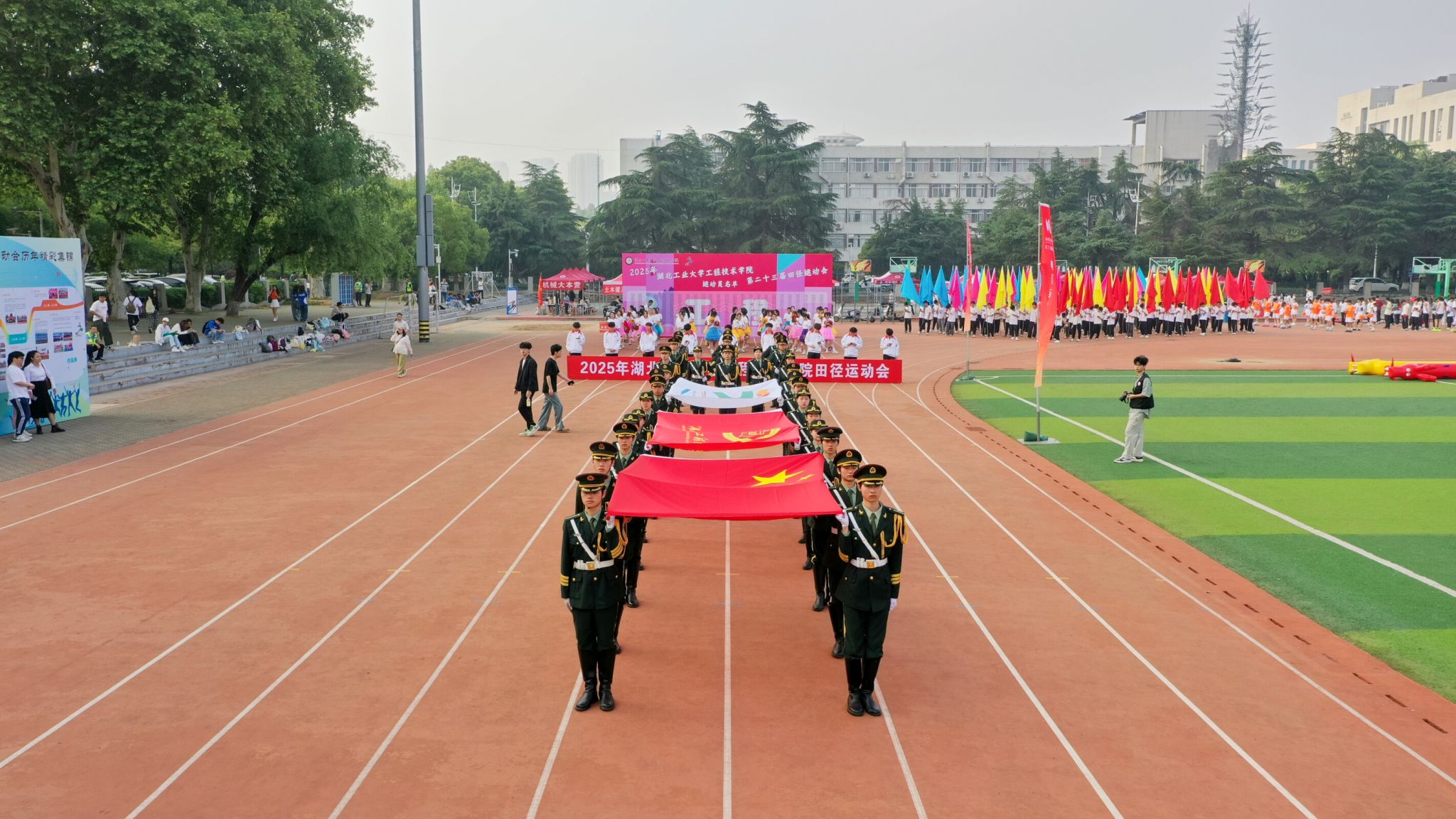 4月25日,湖北工业大学工程技术学院第五届体育文化节系列活动之第二十三届田径运动会在中区体育场成功举行。湖北工业大学党委副书记胡晓艳及学院全体领导出席开幕式。