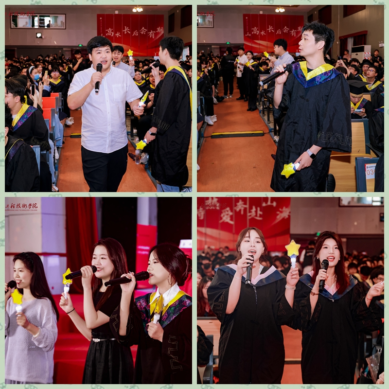 典礼中,16名师生共唱毕业组曲,将现场气氛点燃。当一首《不说再见》的熟悉旋律响起,全场泪光闪烁,往昔的回忆、前路的憧憬都融入婉转悠扬的歌声里,为校园时光写下动人注脚。