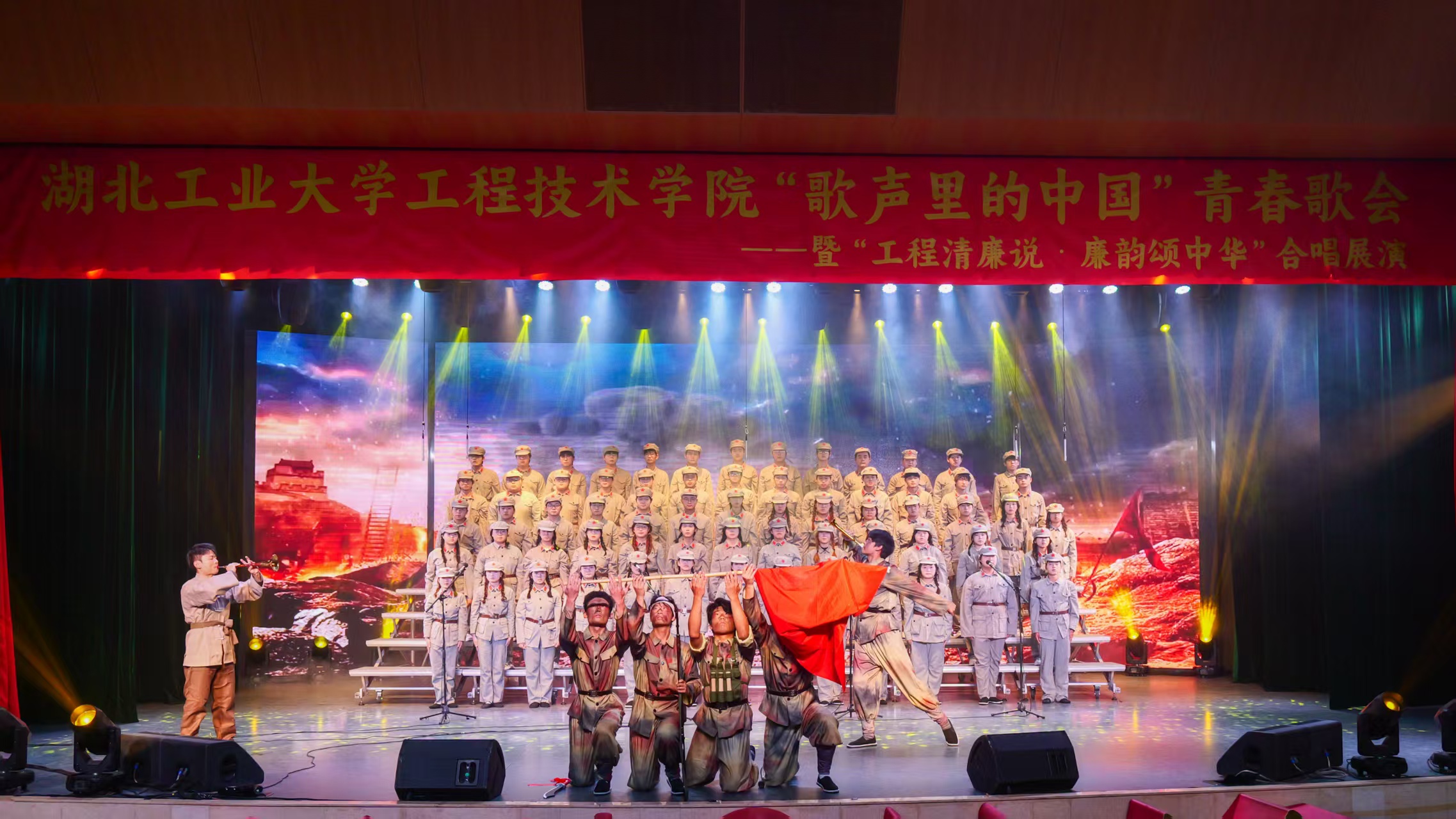 为纪念中国人民抗日战争暨世界反法西斯战争胜利80周年,11月21日下午,学院团委联合纪检监察办公室,在博雅园报告厅举办“歌声里的中国”青春歌会暨“工程清廉说・廉韵颂中华”合唱展演。湖北工业大学党委副书记胡晓艳、校团委副书记章旭应邀出席活动,学院领导、全体中层干部与600余名师生代表共同参加。