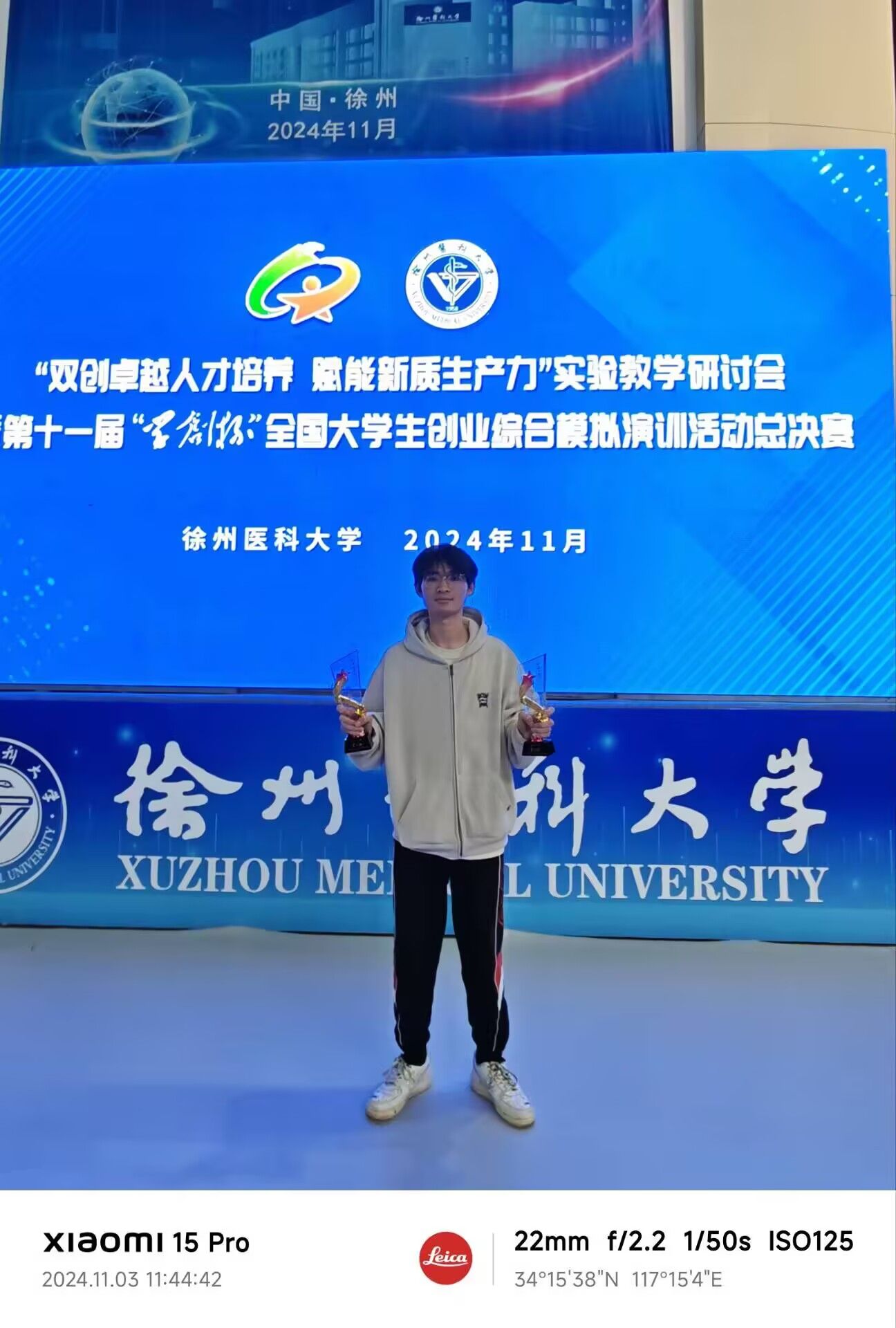 “我从大一下学期开始接触‘学创杯’这个赛事,到现在为止已经连续参加了两届,从什么都不懂的小萌新到现在初露锋芒的参赛者,从2023年的省特等奖到2024年的国家特等奖,我完成了从迷茫到自信的蜕变”和大多数创新创业竞赛人一样,如今展露光芒的王平安也有一个迷茫的新手期,面对繁多的创业事务,前路难料的战略规划,王平安也曾感到无从下手,然而困难从来拦不住勇者,从一名初学者走到现在,王平安有过很多想法,却从来没有过放弃的念头,“只要上手做,做得不好就改,多听多问,就没有难的事情。“这就是王平安的做事风格。从来没有成绩是轻易得来的,“合抱之木,生于毫末;九层之台,起于累土。“国奖的闪耀成就来源于王平安的敢于拼搏和坚持不懈。